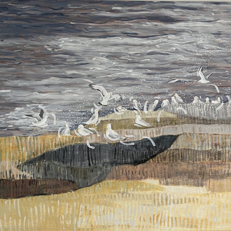 Landfall, Lord Howe Island by Geoff Hargraaves – After several days sailing from Broken Bay in the Gosford to Lord Howe Race, a sense of excitement grips the crew as the Island looms up from the horizon. The race has been watches on deck, being drenched with water as waves crash over the decks, little sleep, often grabbing a few minutes before being called up for a sail change, then trying to sleep in wet clothes before its time to done the soaked wet weather gear for another watch. Despite the tiredness, everyone is eagerly watching the island grow as we sail closer and closer. The promise of warm showers and cold beer beckons. Sides painted black, wire across the back.