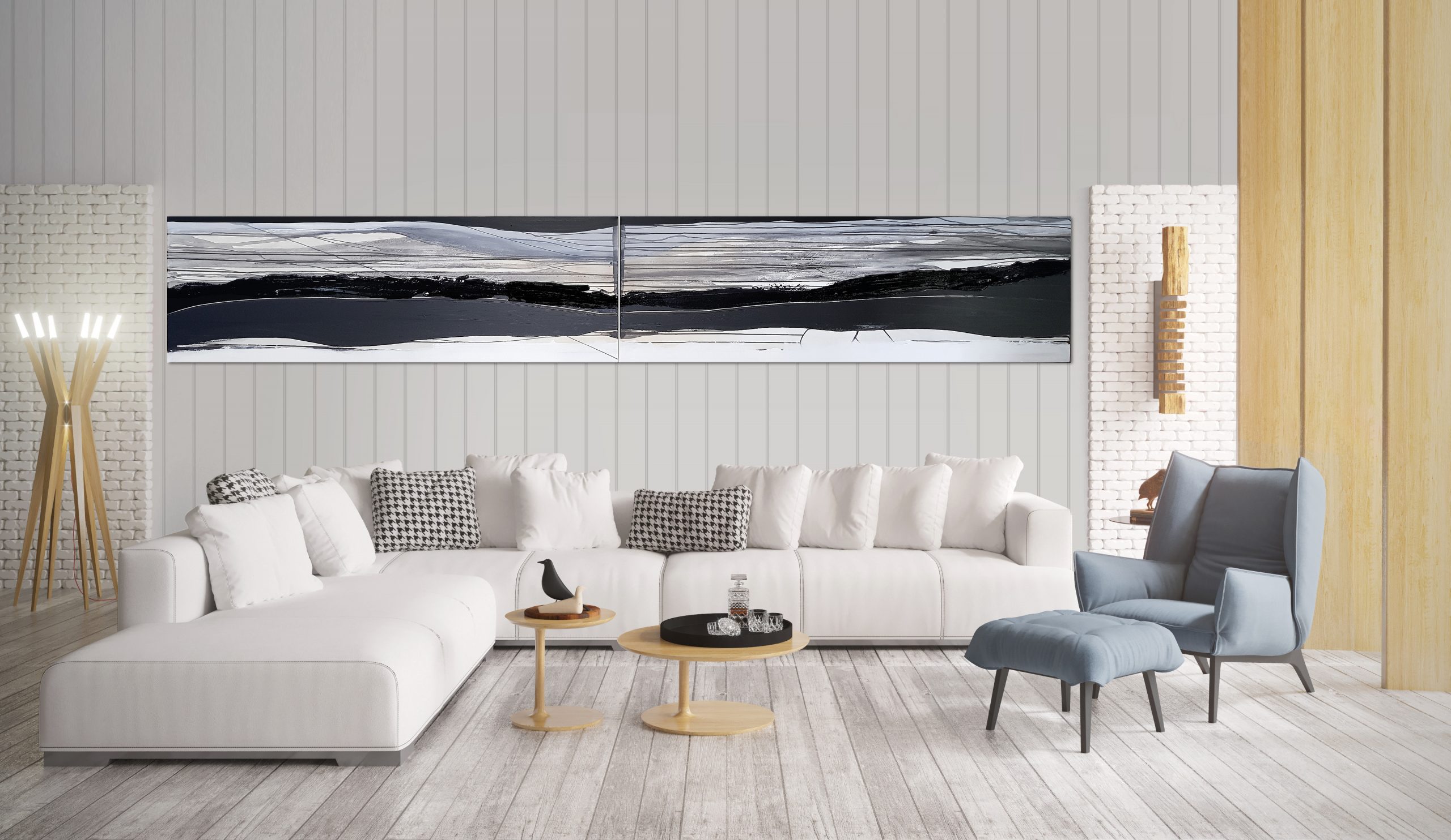 Landscape No 11 (diptych) by Emilie Heurtevent is a combination of multiple layers and fine brush strokes made with acrylic paint. It will fit into most interiors and blends in well with most colour schemes. A great solution to a hallway.