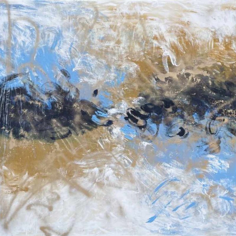 Semi Abstract Landscape. Inspired by the great Australian Landscape. The moon casts its last light on a mountain landscape through the encroaching cloud cover delivering a a lingering sense of beauty and a slight despair at the passing of time.