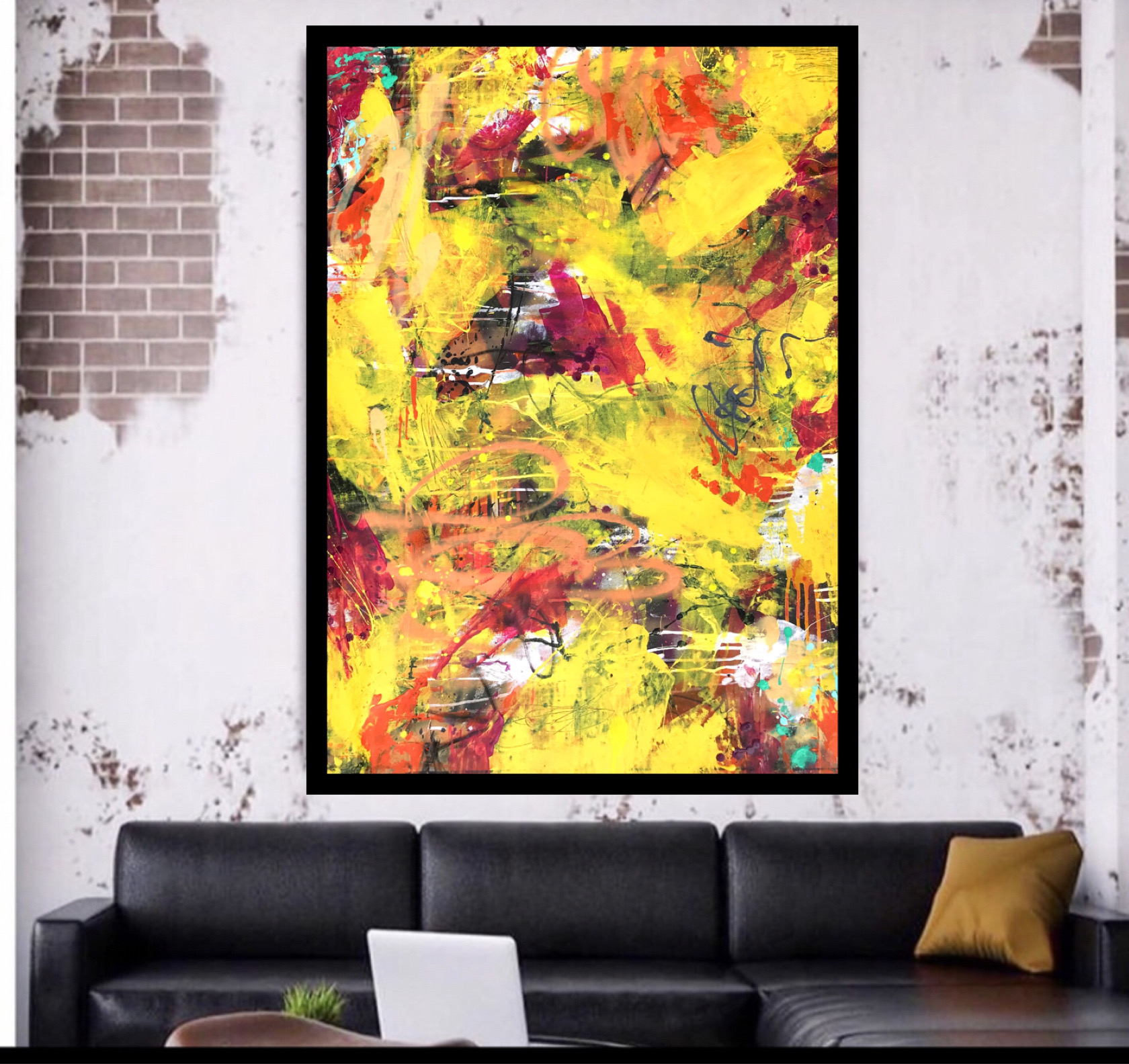 This original mixed media painting is directly influenced by Graffiti in City Laneways, Vintage Billboards and other weathered surfaces. The work is also inspired by my love of gestural abstraction and my obsession with using spray paint.