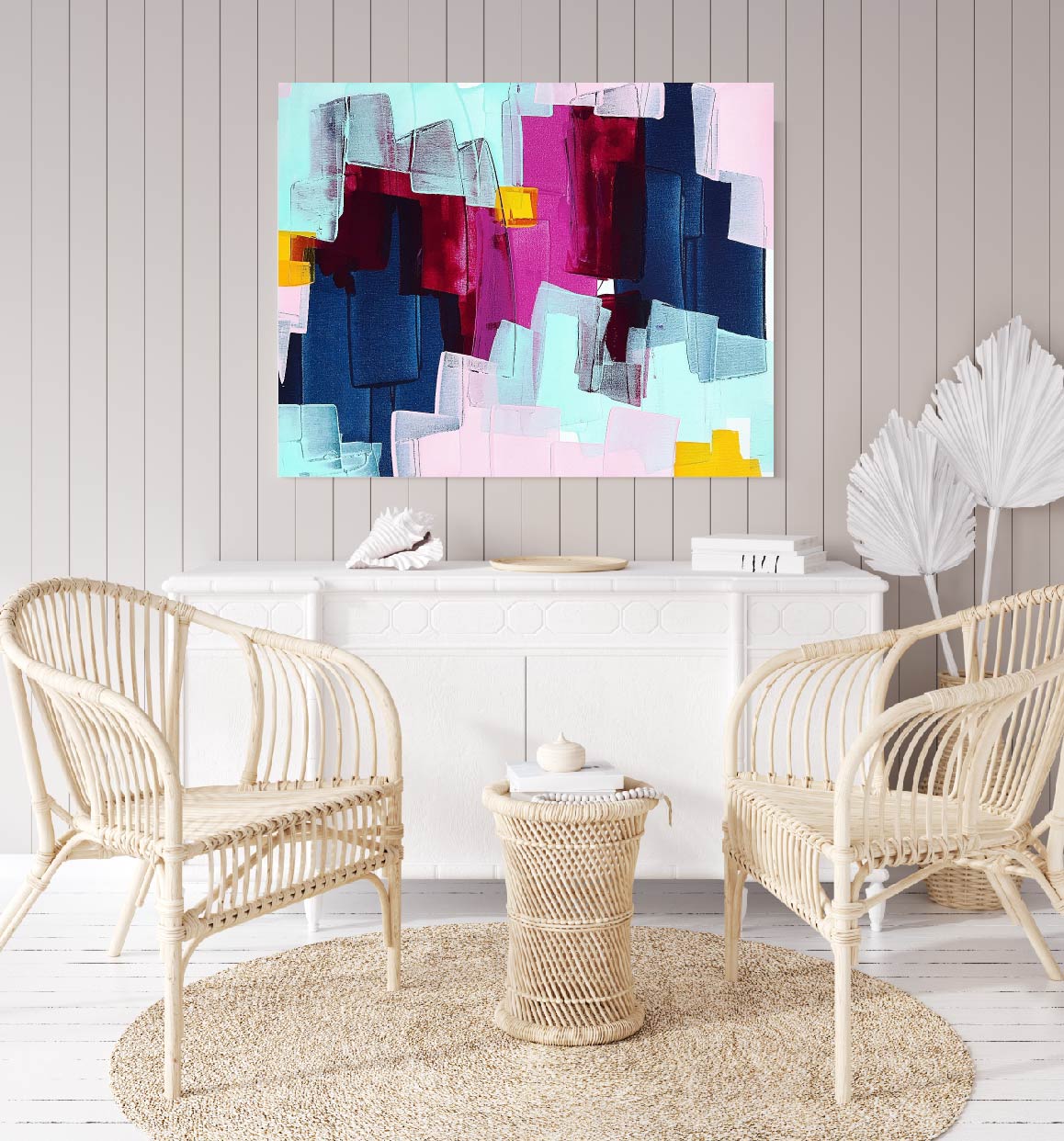 Original abstract acrylic artwork. Artwork sides are painted white and it comes with a wire across the back, ready to hang on the wall.