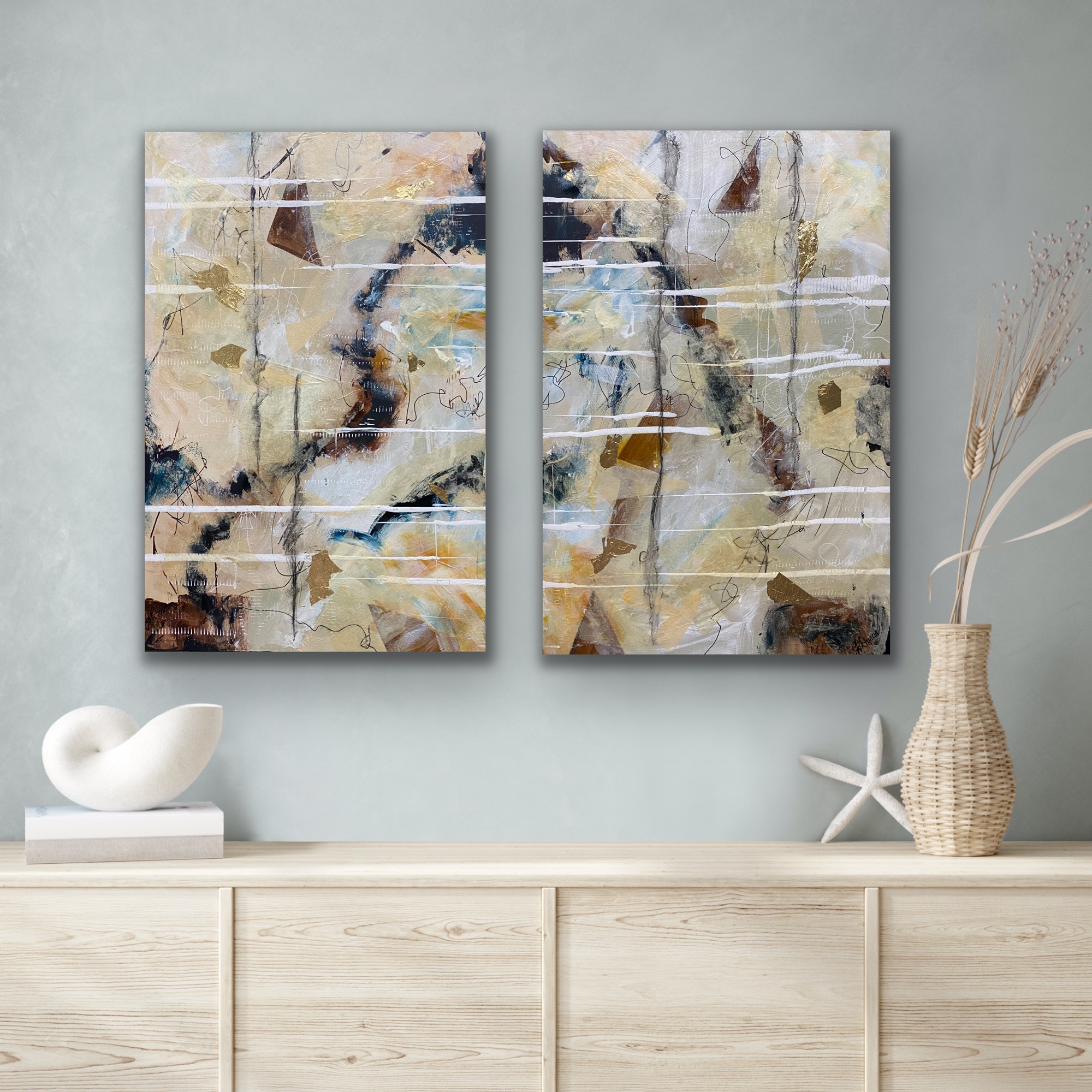 Latte – Diptych by Julie Dynan Two original mixed media abstract paintings.