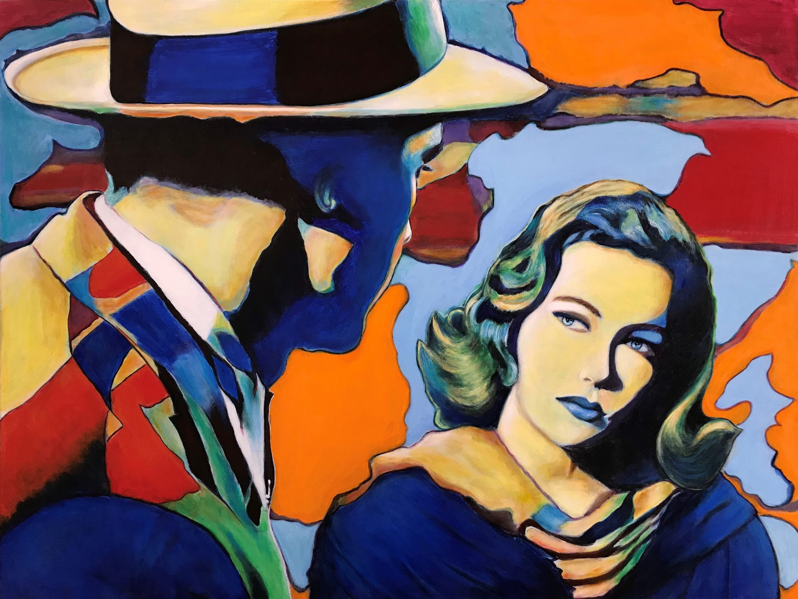 The vivid stained-glass appearance of my painting creates an idealised interpretation of the film shot, aimed to capture the ethereal quality of the two Hollywood Golden Age icons.