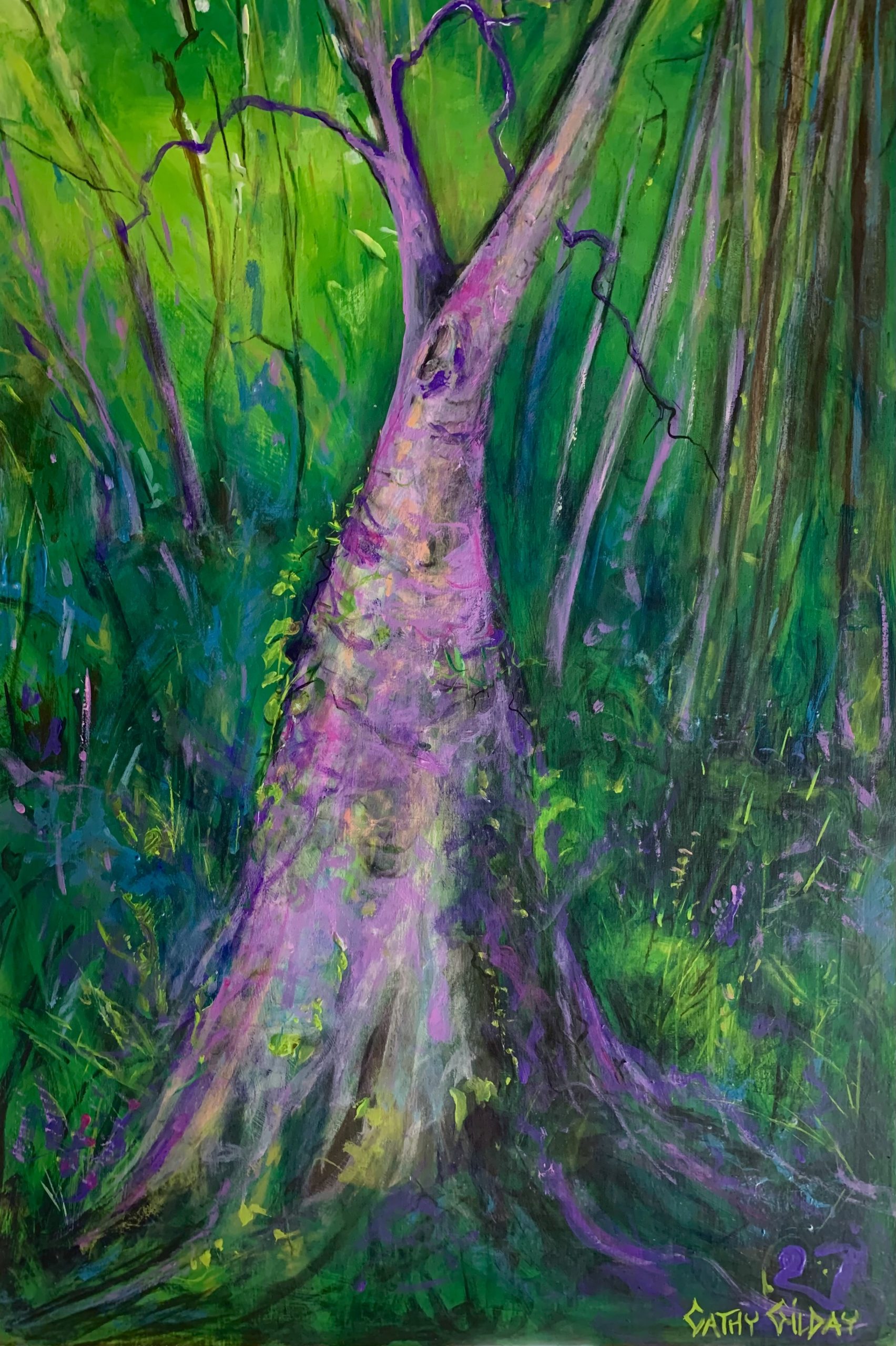 Lavender Lady by Cathy Gilday -Trees always remind me of people. Each, have their own persona and shape and no matter which tree I look at in nature, I always see something different. To me, this particular old girl, was majestic. She stood proud and seemed to command my attention, so I bathed her in lavender hues, like a fine lady, draped in a gown.