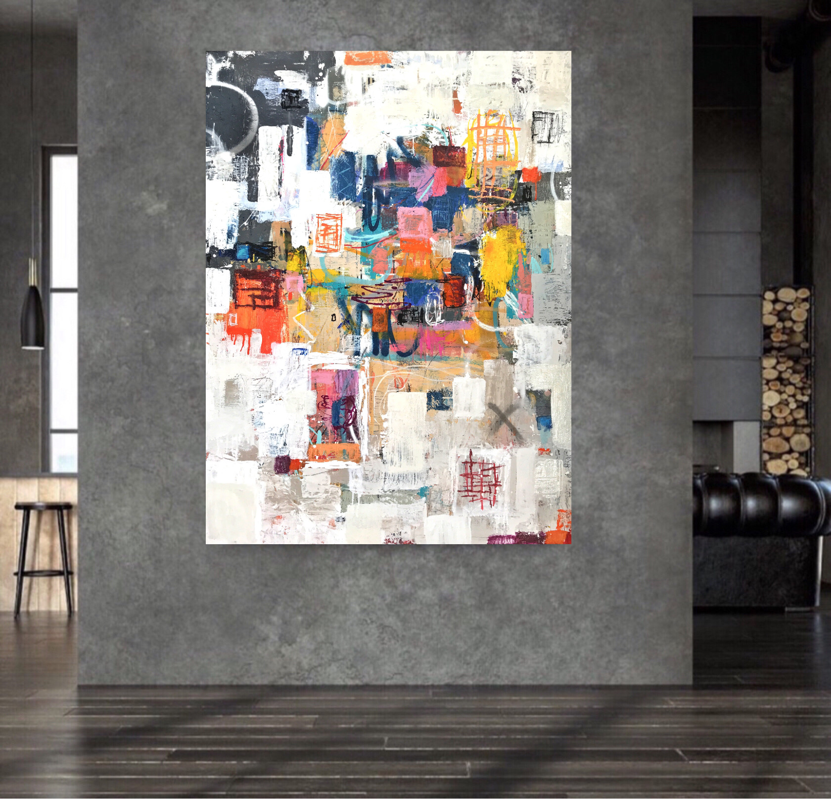 This artwork has a textured finish created by built up layers, a visual effect mimicking the look you would see in the street where this effect is created over time on Graffiti Walls & Advertising Spaces, Insitu examples are not to scale.