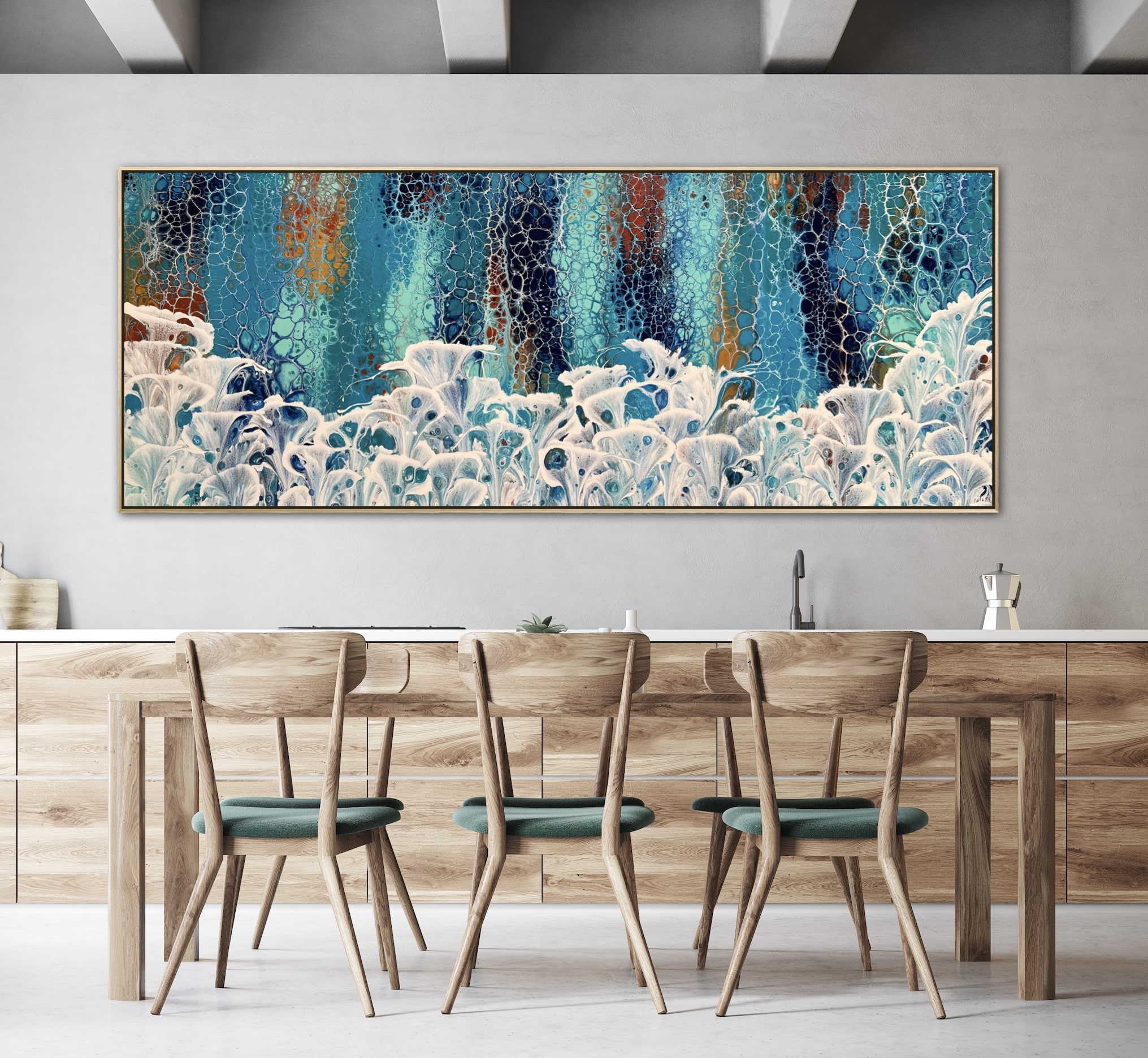 This artwork is available now and is ready to hang. It will leave my studio within 3 business days. The painting continues down the sides of the canvas so there is no need to frame. The greatest of care is taken with all my artwork and it will be carefully wrapped in bubble wrap and sturdy cardboard. Packaging and delivery within Australia are included in the artwork price.