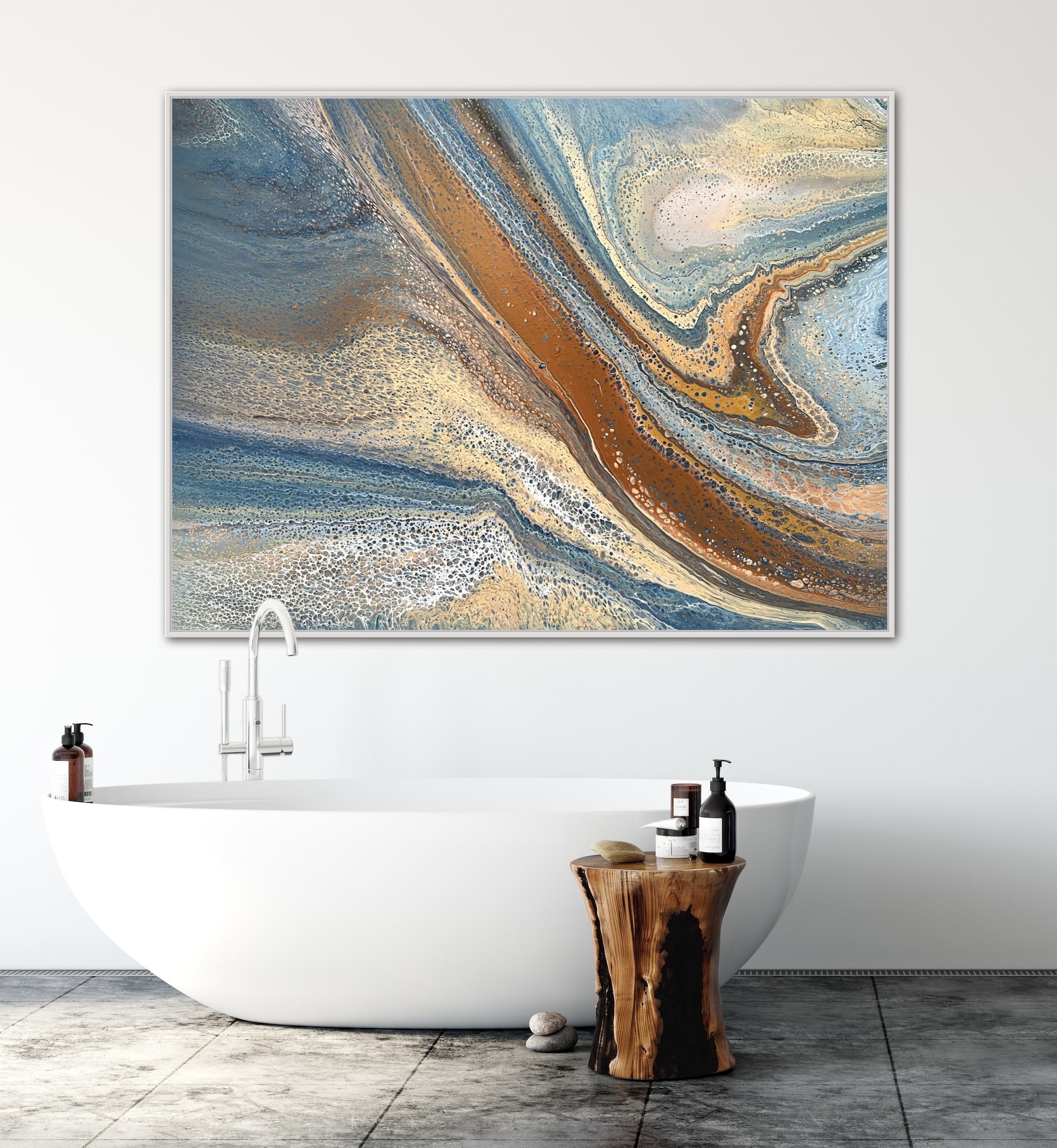 ‘In situ’ photos have been included to help with visualisation of the artwork in your home. In situ photos provided were created using the ArtStage app and may not be perfectly to scale. This being said, every effort has been made to represent the size of the art accurately but please read the dimensions of the artwork to ensure it fits your space perfectly. Where provided, photos of framed art are for illustrative purposes only.