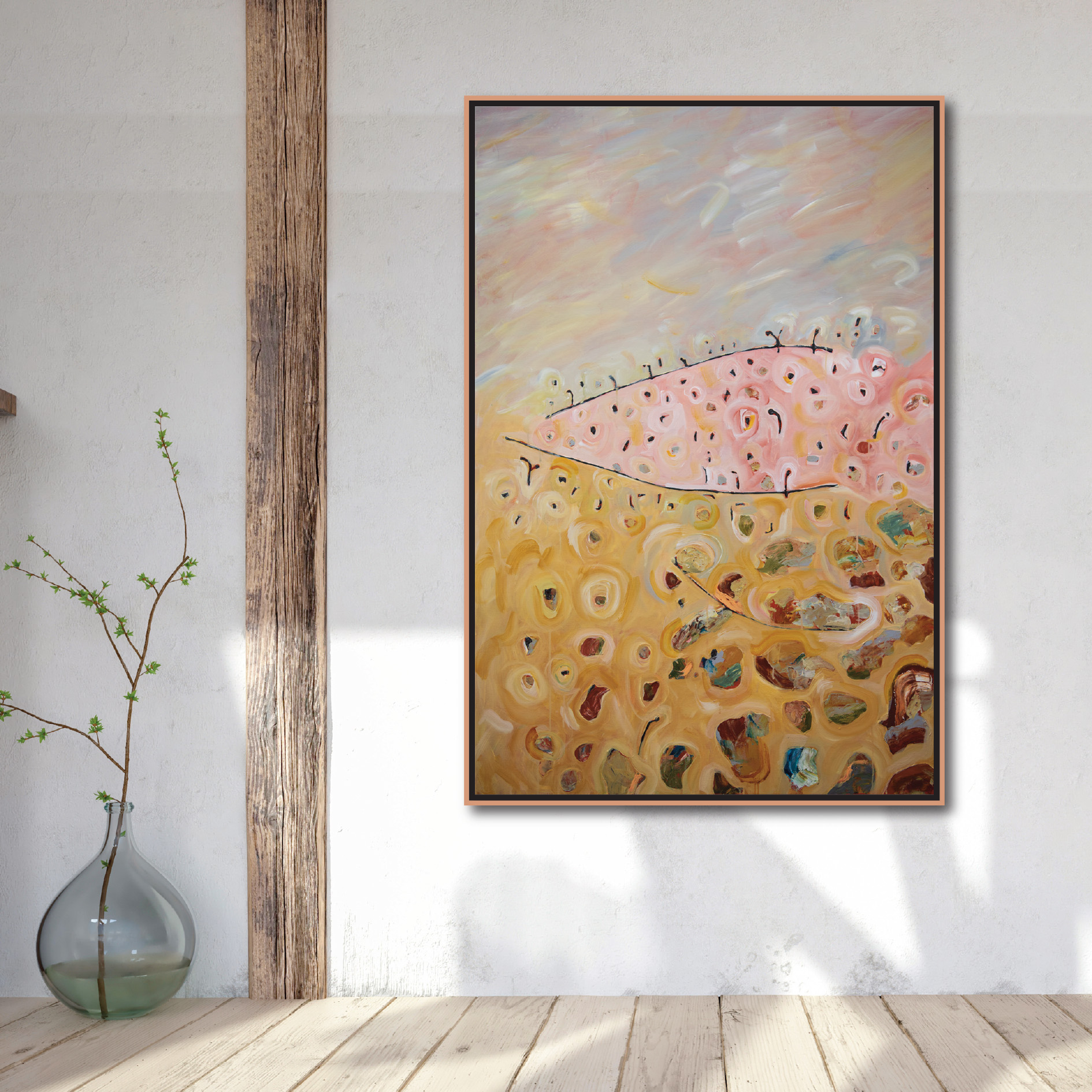 This beautiful contemporary abstract landscape painting draws inspiration from the landscape around Michael’s home in Central Victoria.
