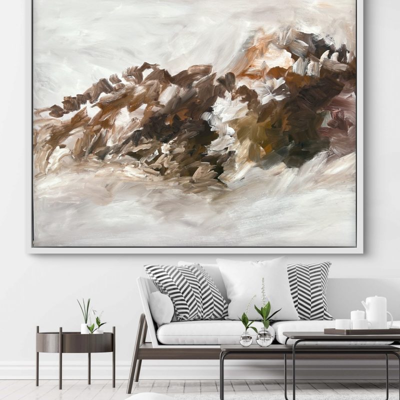 Leanganook Granite 3 by Michael Wolfe – 184x92cm framed in a thin line Mountain Ash frame in a Walnut Stain finish.