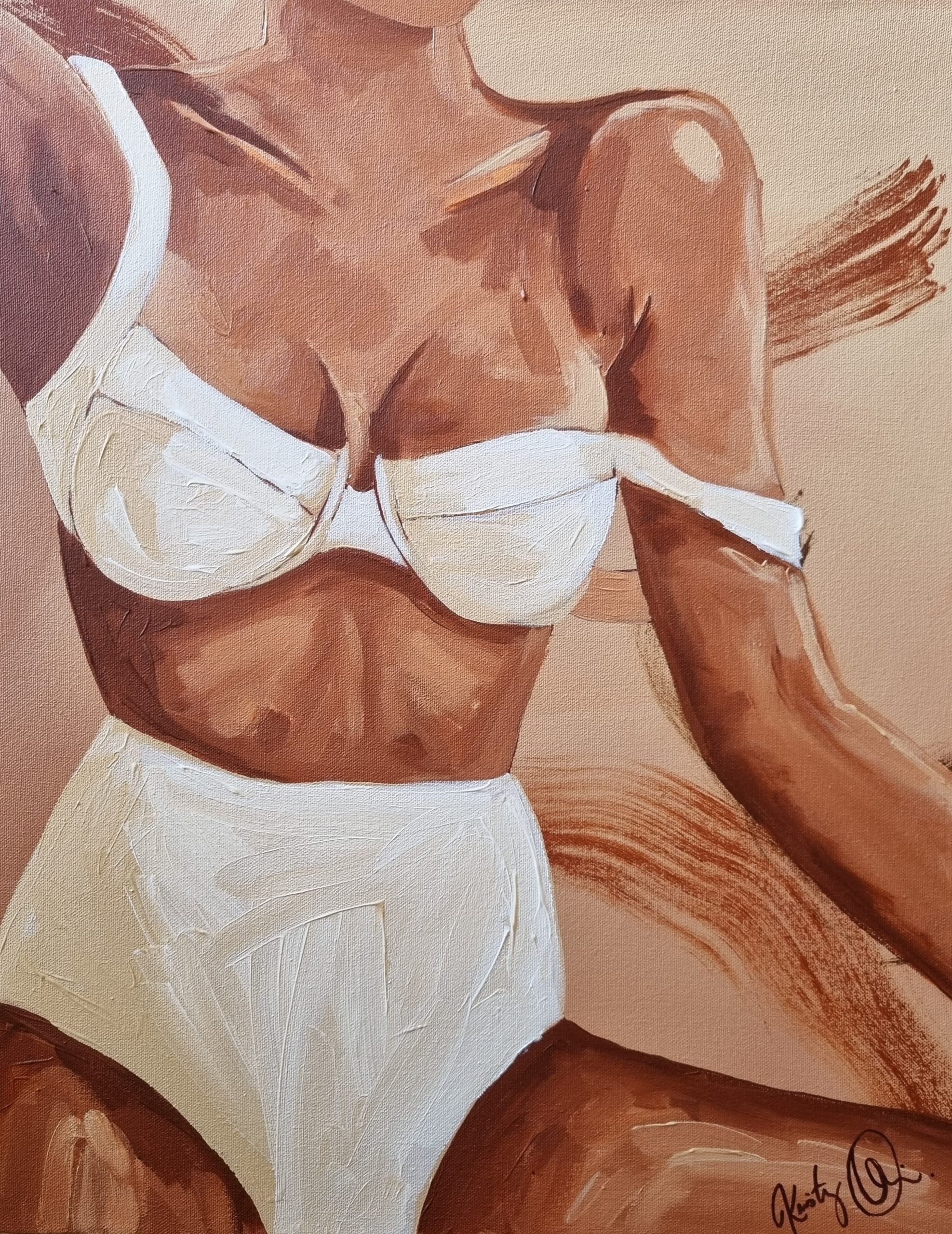 The female figure in natural form is always something i come back to when i need to re-center. There is something beautiful about a woman who is comfortable in her skin, its quiet captivating. It clears all the fog and puts my mind at ease. My woman are calm, natural and comfortable in their skin, they have nowhere to be and are just having some time to themselves. Original piece.