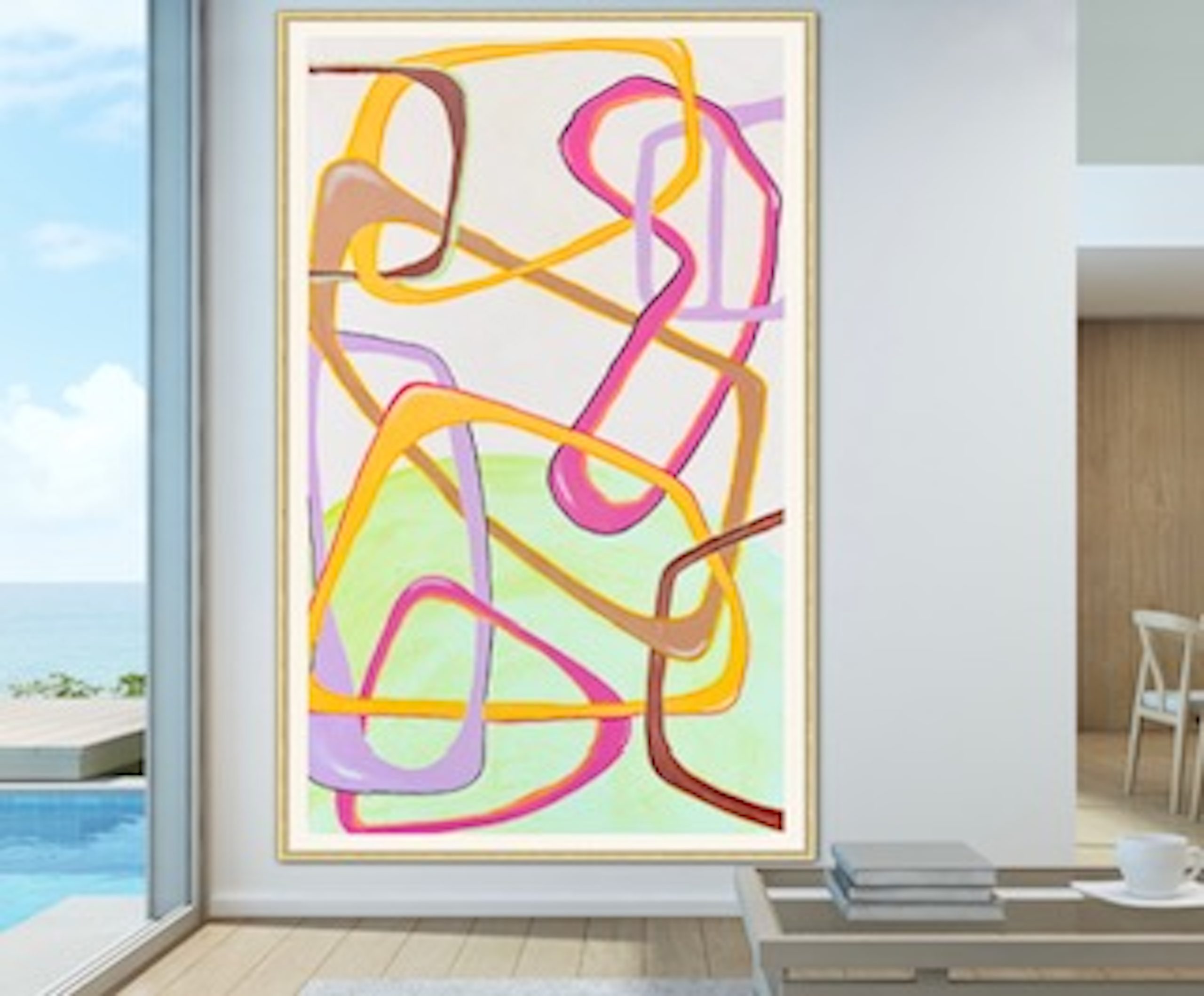 Lets Dance by Collie Crawford – This stunning large abstract painting is full of vibrant colors and unique textures, bringing a dynamic energy to any wall. Its bold and expressive style will be a conversation starter in any room, adding a sense of visual drama and movement that will be sure to capture the attention of anyone who enters.