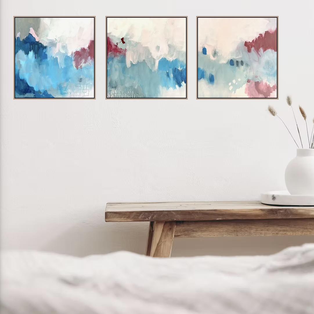 No frame included; custom options available, oak floating frame recommended. Please contact help@artloversaustralia.com.au for enquiries and framing quotes.