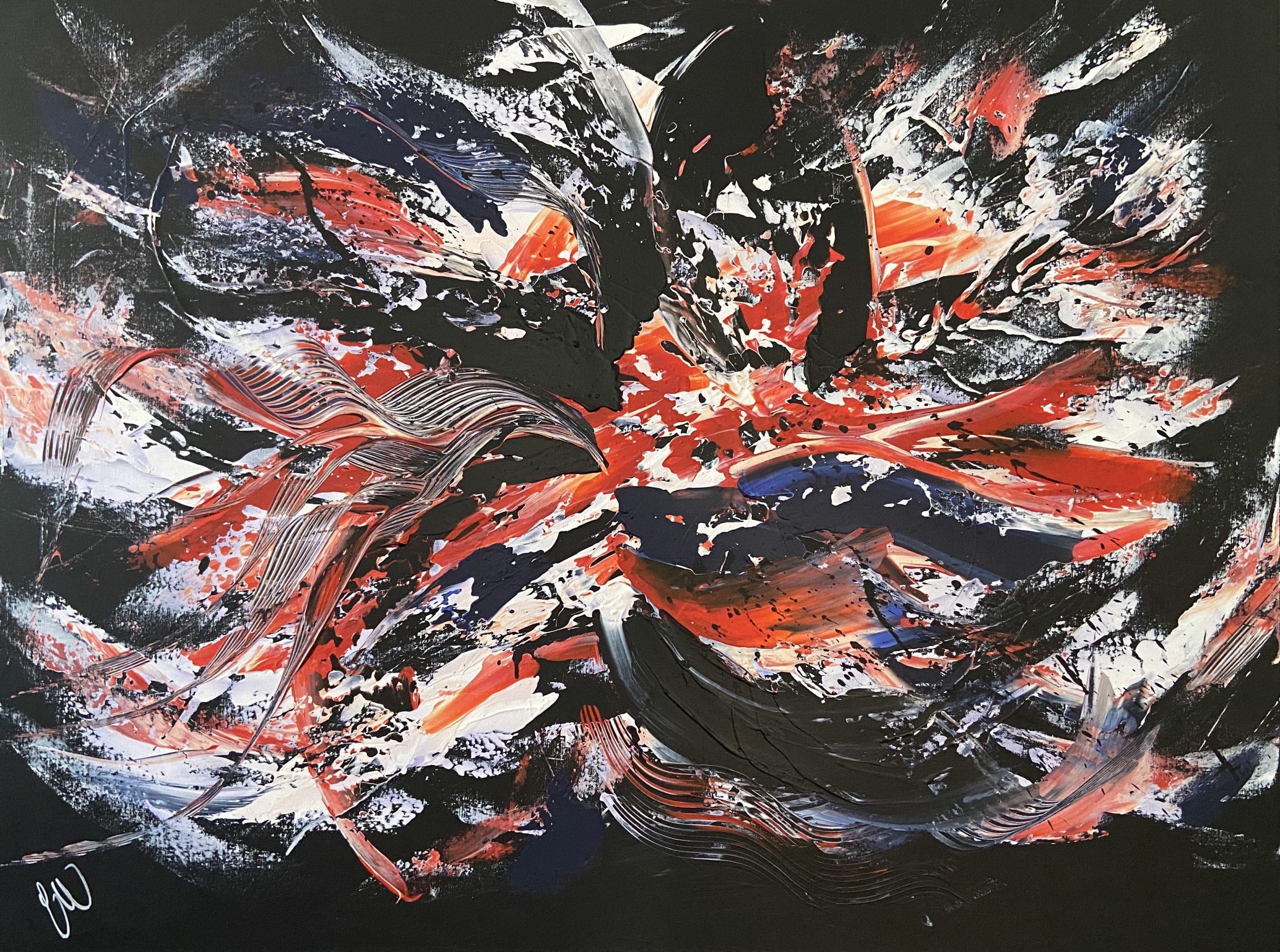Let’s Get Lost by Carrie Welsh is a beautifully textured large bold abstract. A true statement piece, this will add so much life to any room. 91.4 x 121.9 cm. Acrylic on canvas, ready to hang.