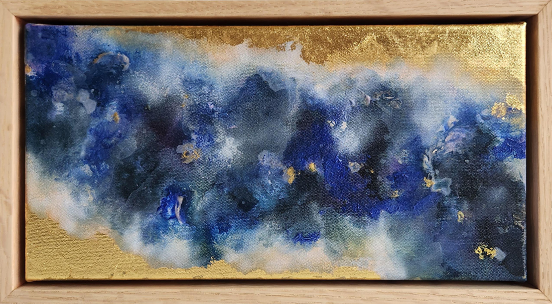 ‘Let’s make waves’Â by Fern Siebler is a playful mini original artwork featuring blues, white and pure 24k gold leaf. This piece can stand freely on an entry way sideboard or desk, or be hung on your wall.