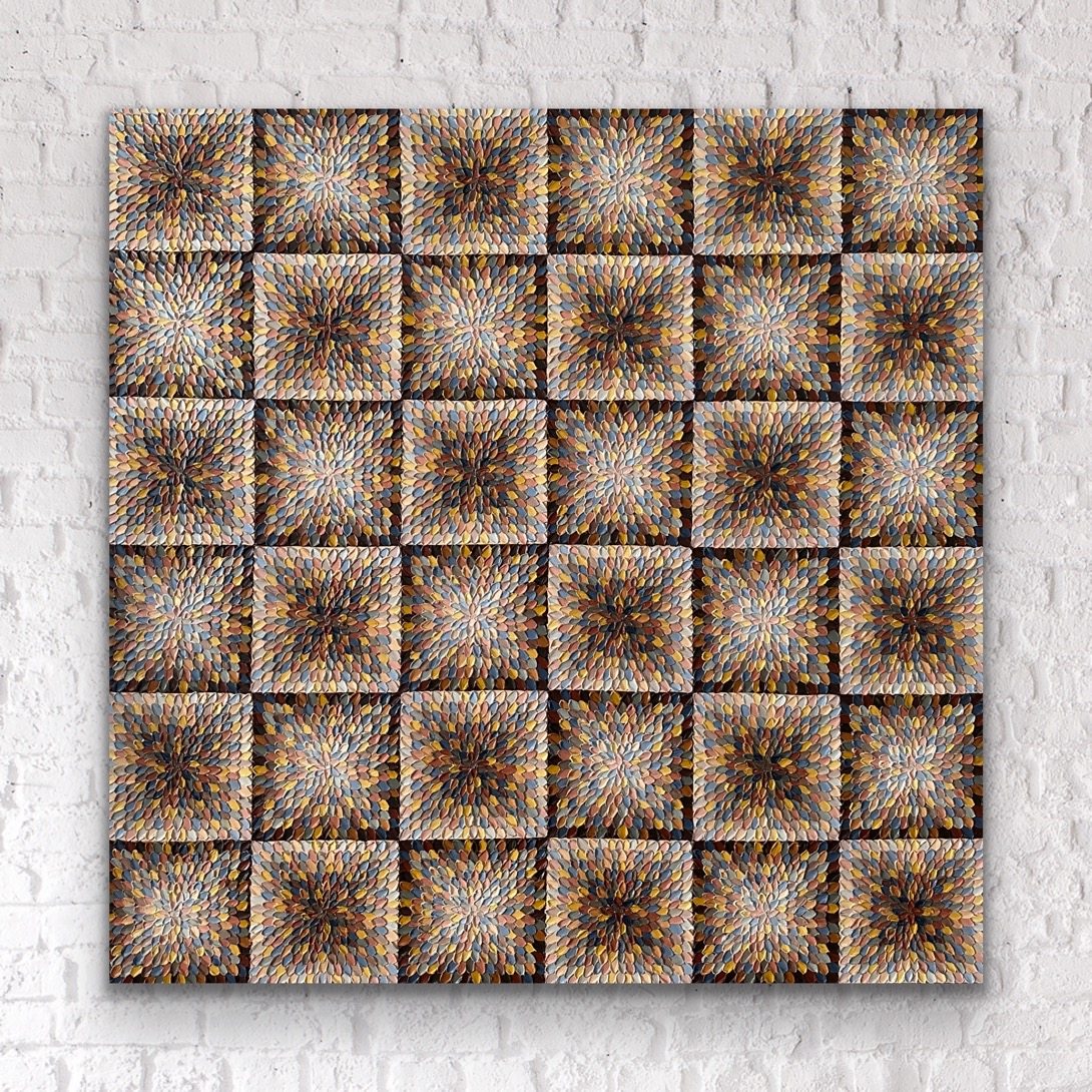 I am excited to bring my geometric optical art abstracts to you. My abstract range takes you into fascinating world of optical illusions. Particular effects are achieved by introduction of rhythmical repetitions and drastic or balanced contrasts in tone or colour. The use of light and tone make some of the series glow. Some of the pieces disrupt our vision and make it hard to interpret painting in conscious way. Some of them look like visual puzzle. My art have impact on viewer: for some it is calming and soothing, for others it will help to concentrate or cause certain reaction. I love creating artworks that people have emotional response to and feel connected in some way.