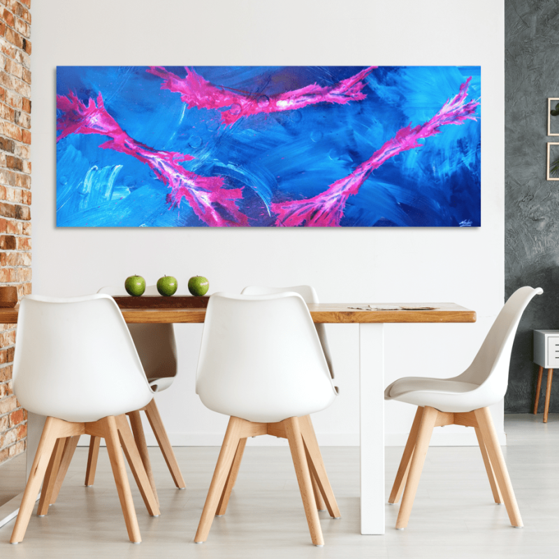 This original painting has been painted on a recycled canvas made from 100% recycled plastic bottles. It is archival and sustainable and comes ready to hang, varnished, initialed at the front and signed on the back with a certificate of authenticity stamp
