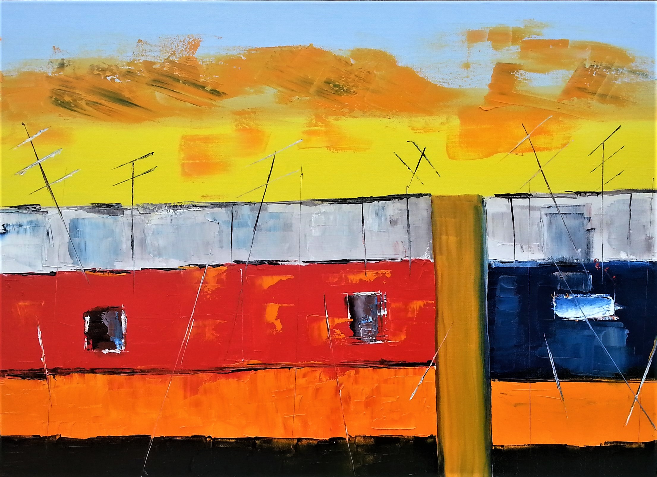I remember living in some rough areas in the 70s, and rough homes and streets, with there tv antennas, the cry of children in homes having a hard time. men shouting, and rough cars dumped in the streets. and this painting depicts part of that life. working-class man as Jimmy Barnes would sing. as I did go to school with him.