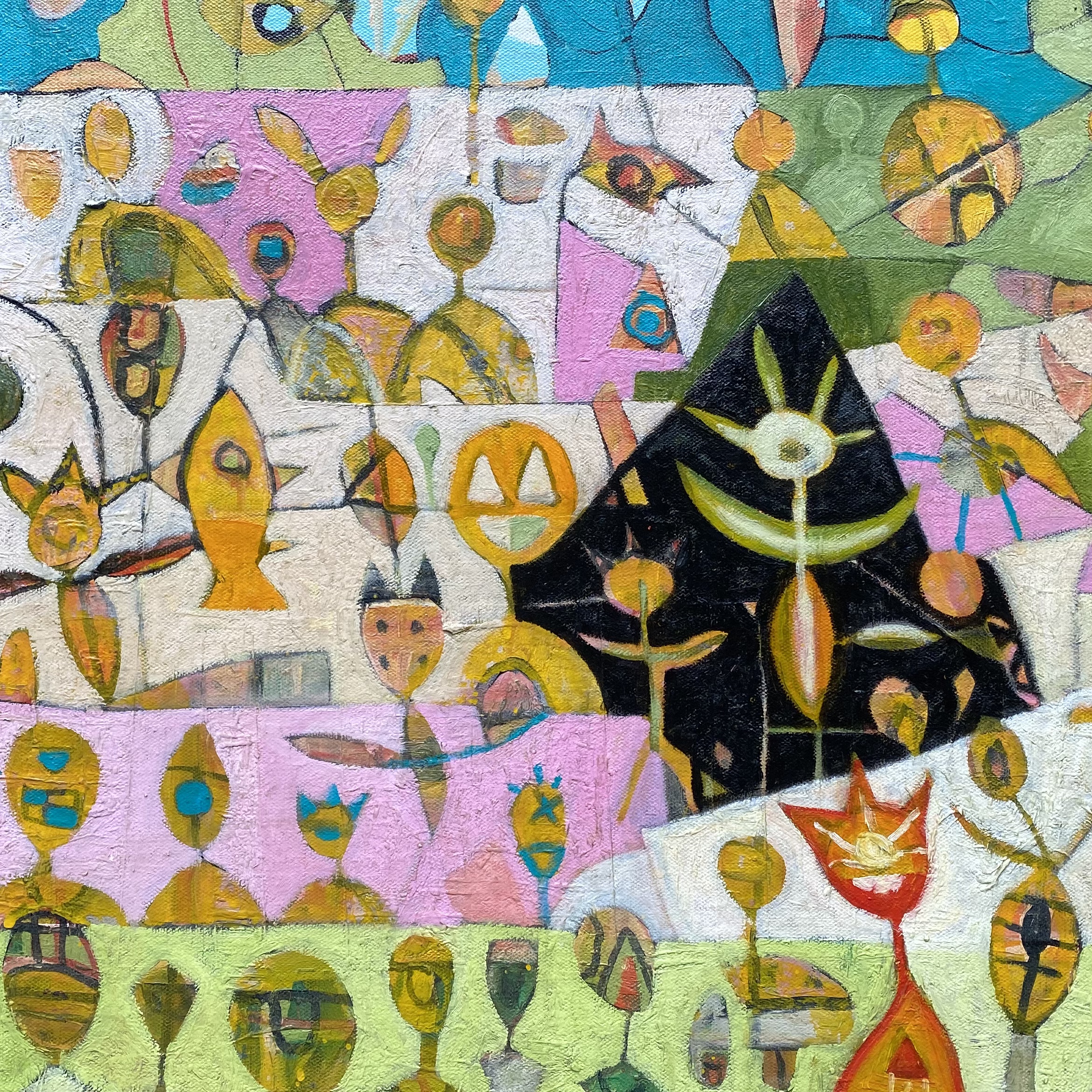 Life Is Good by Stefan Mager – A day filled with enjoyable activities expressed in colours, symbols and shapes. Happy times. Life is good. Oil on canvas.