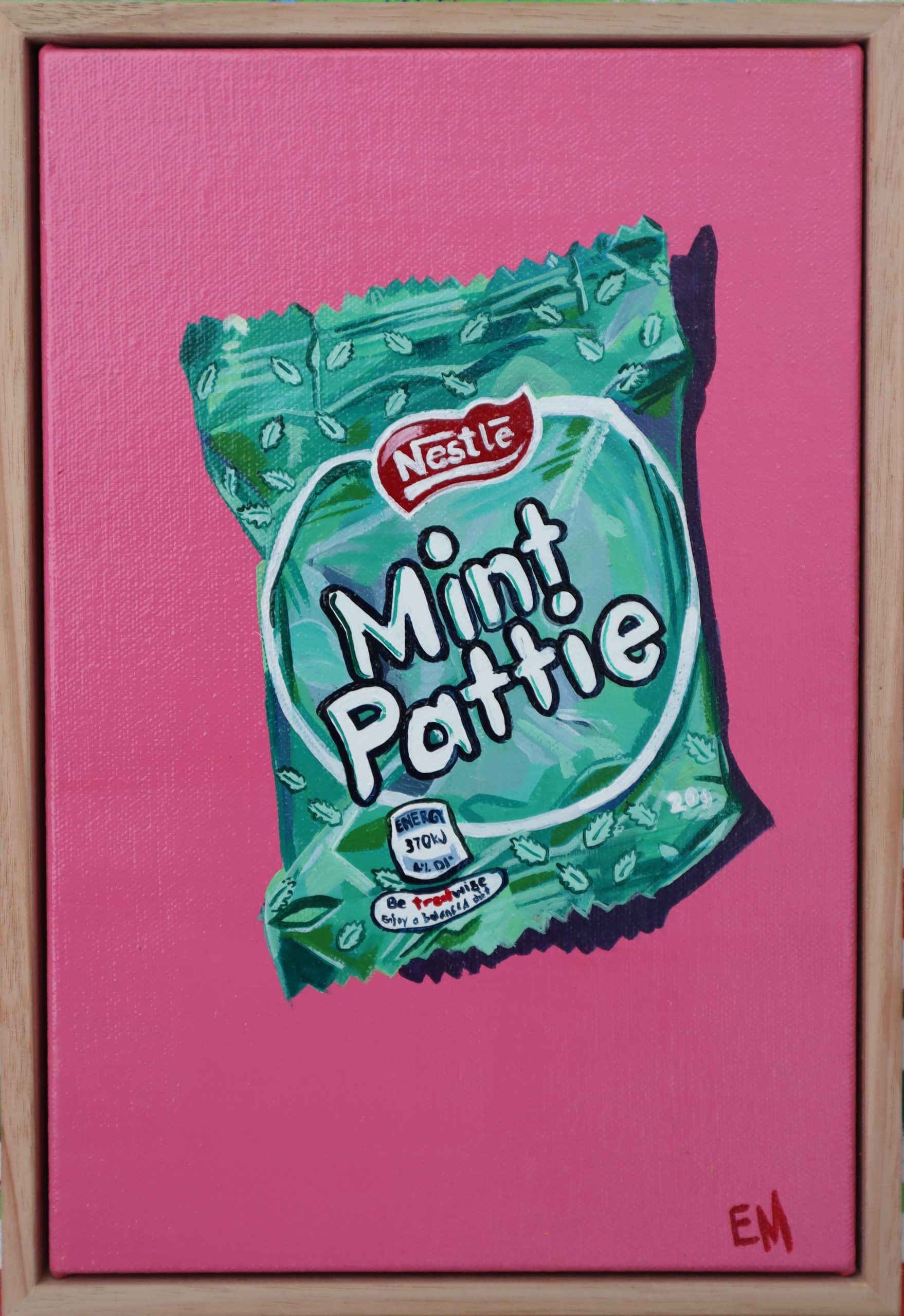 The greens of the mint pattie and the pink in the background make for a fun painting.