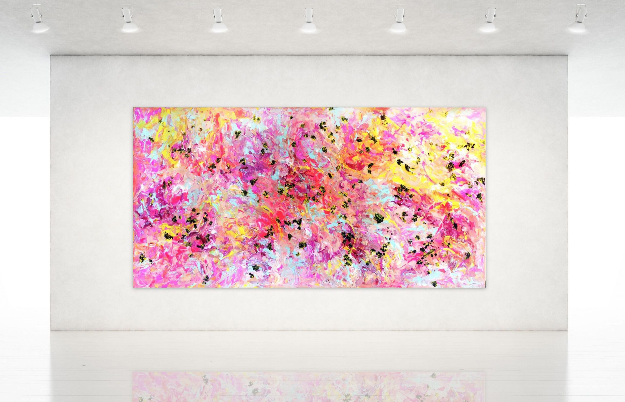 This work is painted on professional-grade canvas and has been sealed with varnish. The canvas has the dimensions is 214 cm in width by 109 cm in height.