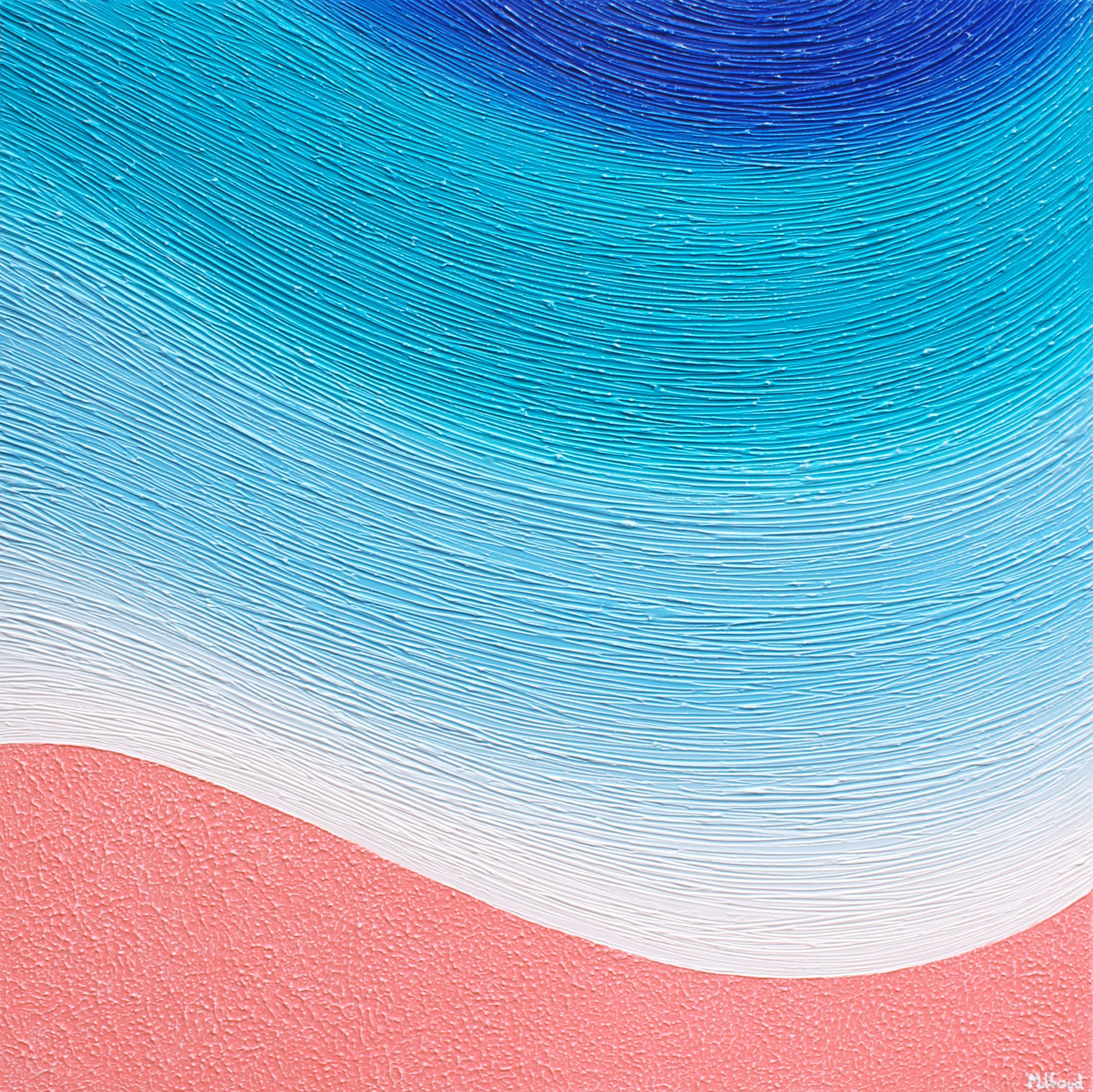 LOVE textures this one delivers. This abstract take on the waves coming onto the beach is part of my wave series. This version I have used more of a peach pink. Inspired by my weekends surfing down Middleton beach. This painting has a heavy textures to create the water ripples – movement and the rough sand. A piece inspired to calm almost like a meditation piece where you feel like you are at the beach. Perfect for a coastal home or a wanting to bring the beach vibes into ones home. The colours are a mix of deep blues, turquoise, sky blues, peachy pinks for the sand with a white wash which shows on the textures. I have become obsessed with every beach at the moment as we are having the longest, coldest and wettest year! Just wanting sunny warm days.