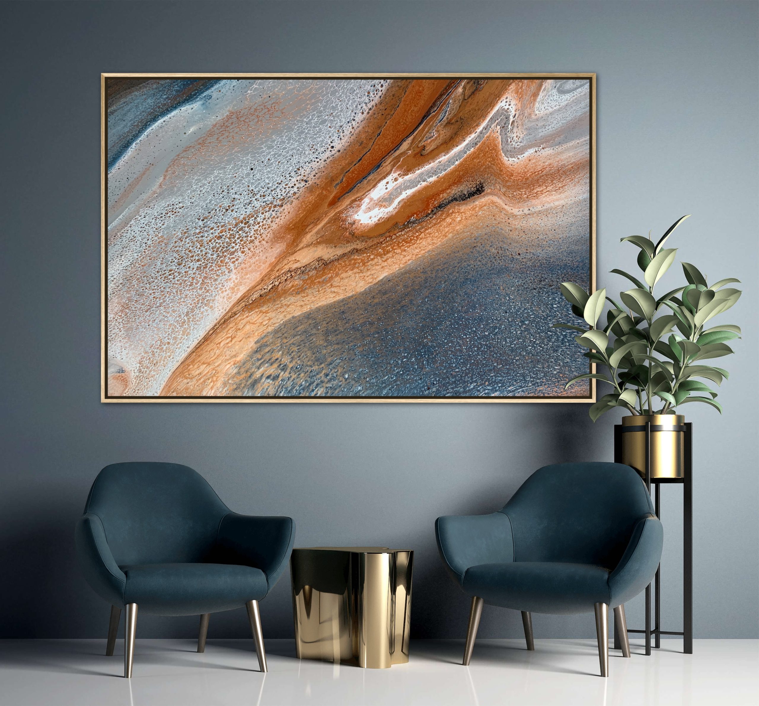 ‘In situ’ photos have been included to help with visualisation of the artwork in your home. In situ photos provided were created using the ArtStage app and may not be perfectly to scale. This being said, every effort has been made to represent the size of the art accurately but please read the dimensions of the artwork to ensure it fits your space perfectly. Where provided, photos of framed art are for illustrative purposes only.