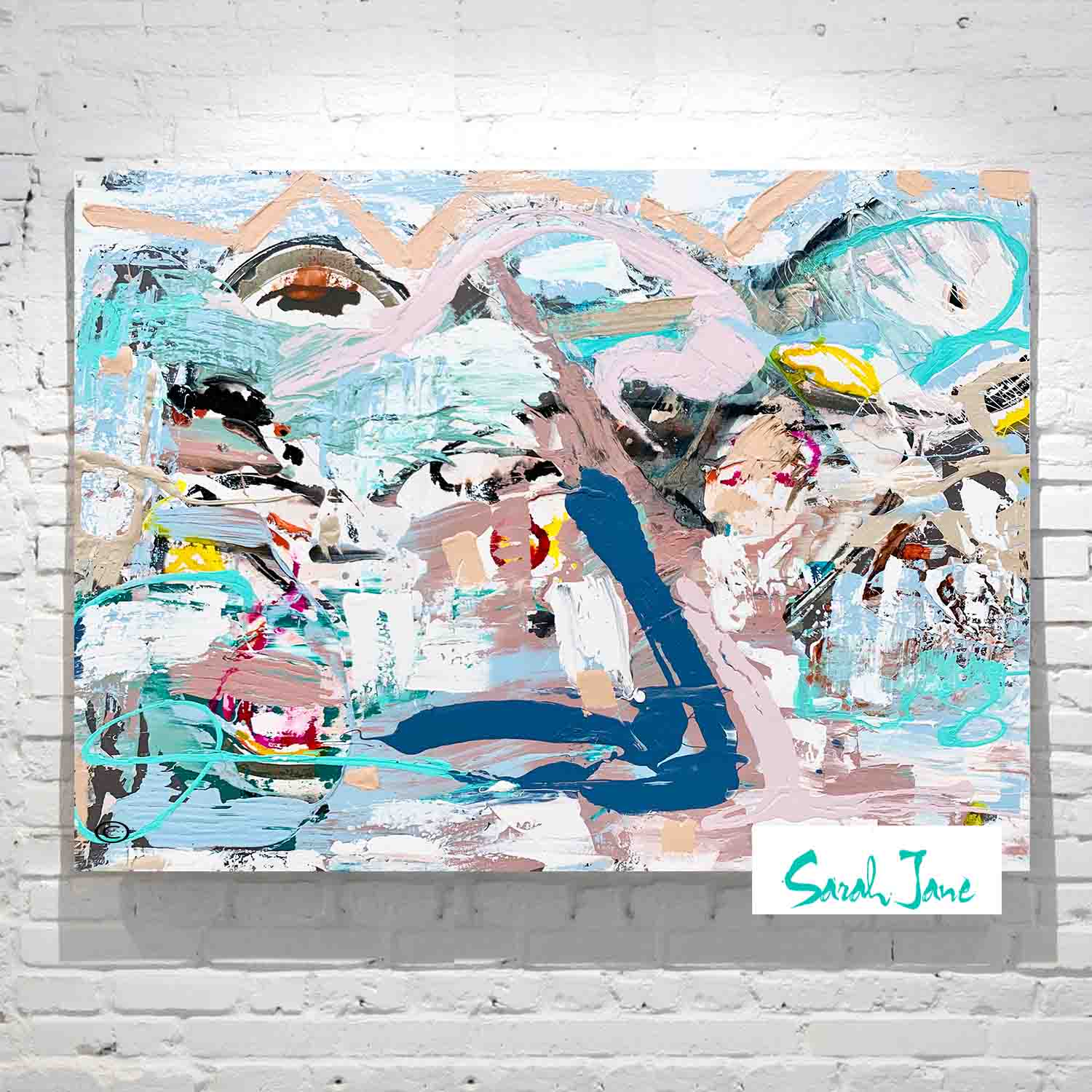 Lets loosen up and bring some fun into your space with Like A Kid in a Candy Shop. A fun abstract painting soft colours creates a beautiful energy. By Australian Artist Sarah Jane