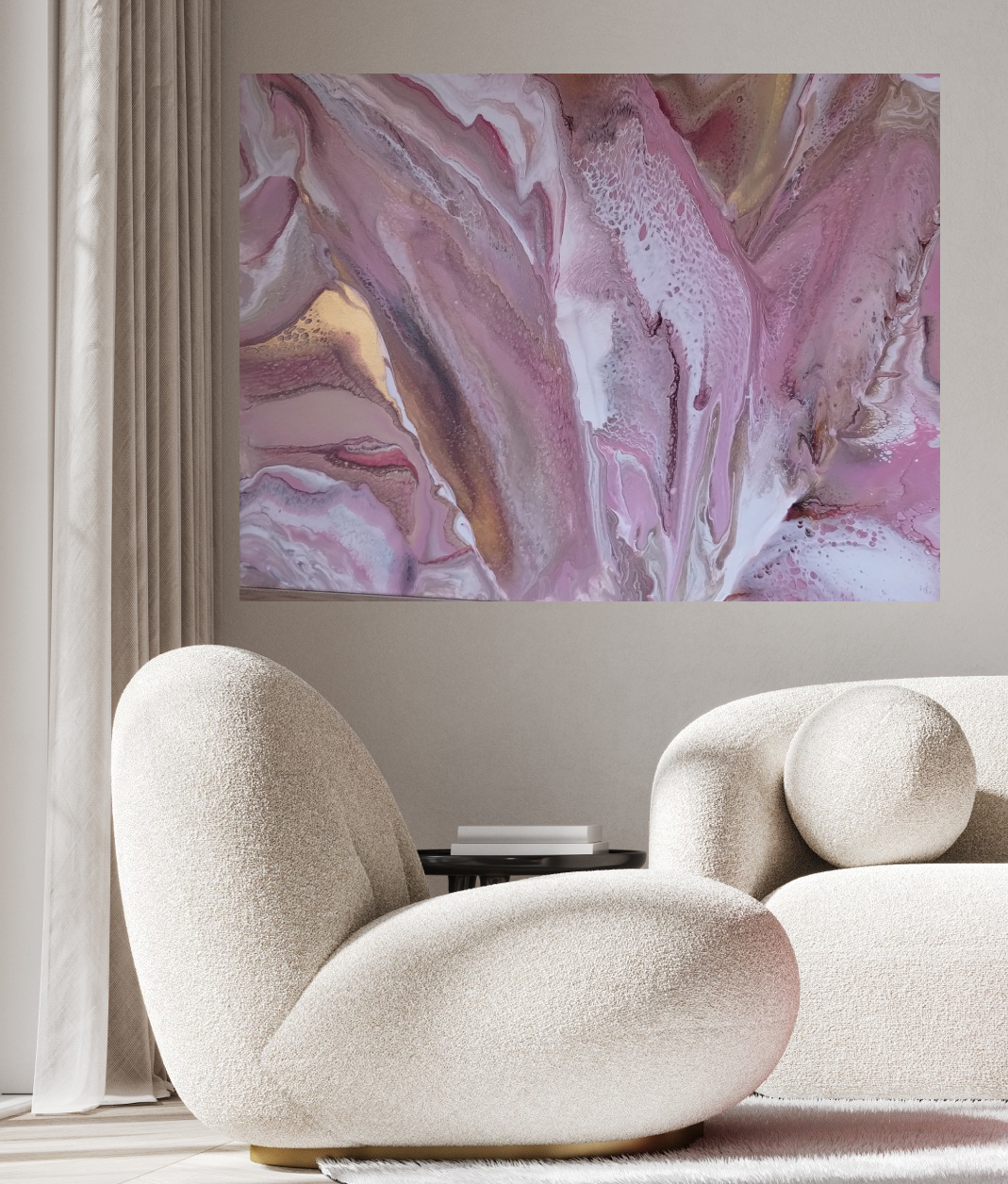 Lily Rose Gold by Valeriya Master – abstract artwork on stretched canvas, inspired by beautiful flowers. Has a gold details.