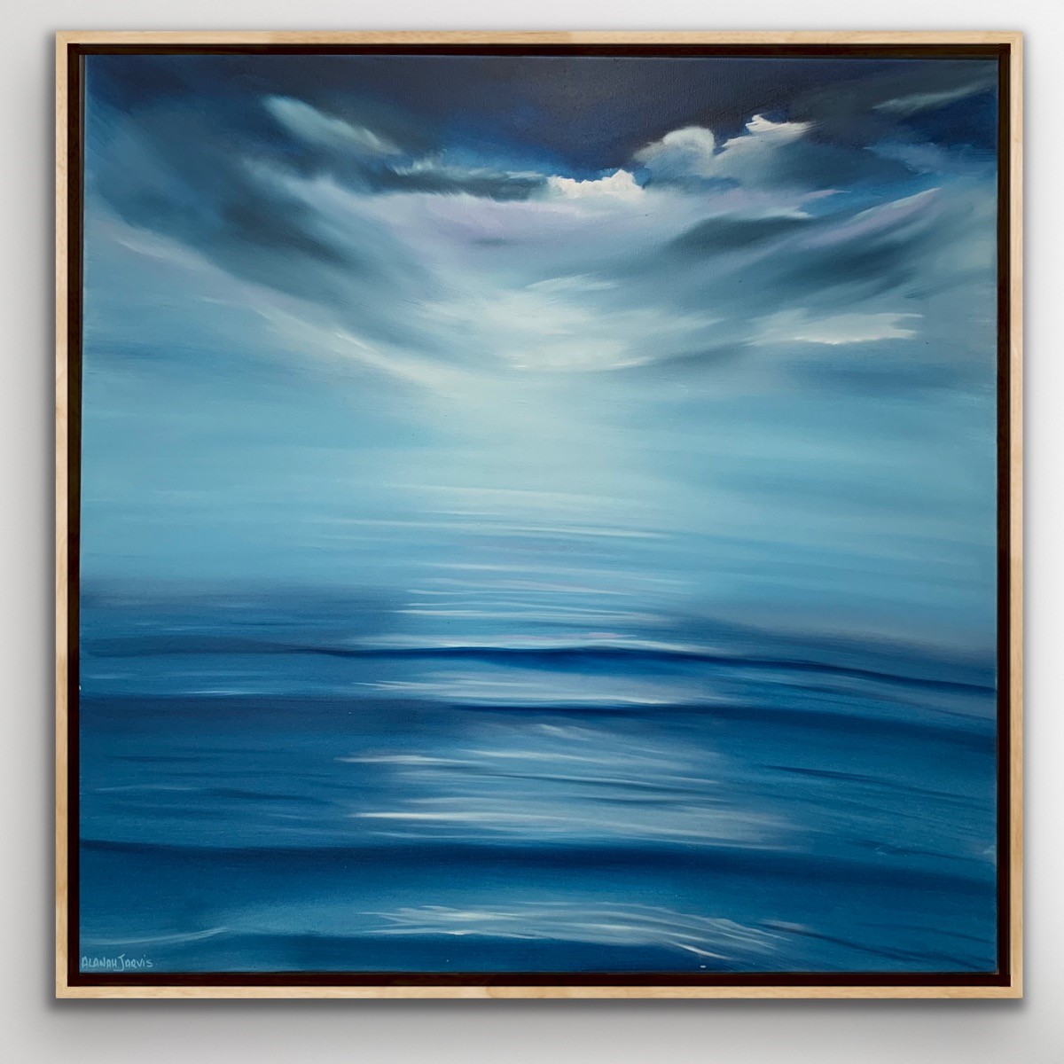 This oil painting is carefully placed on premium canvas and framed in American timber by renown Victorian framers. The edges of the canvas have been painted navy to ensure the perfect finish and to ensure no white is seen from the sides.