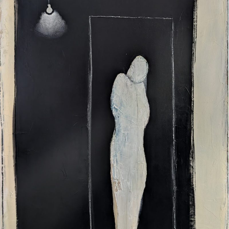 This line art drawing in charcoal is a modern technique using near continual lines. This allows the story and image to flow as one and join together to become a figurative couple connected by love.