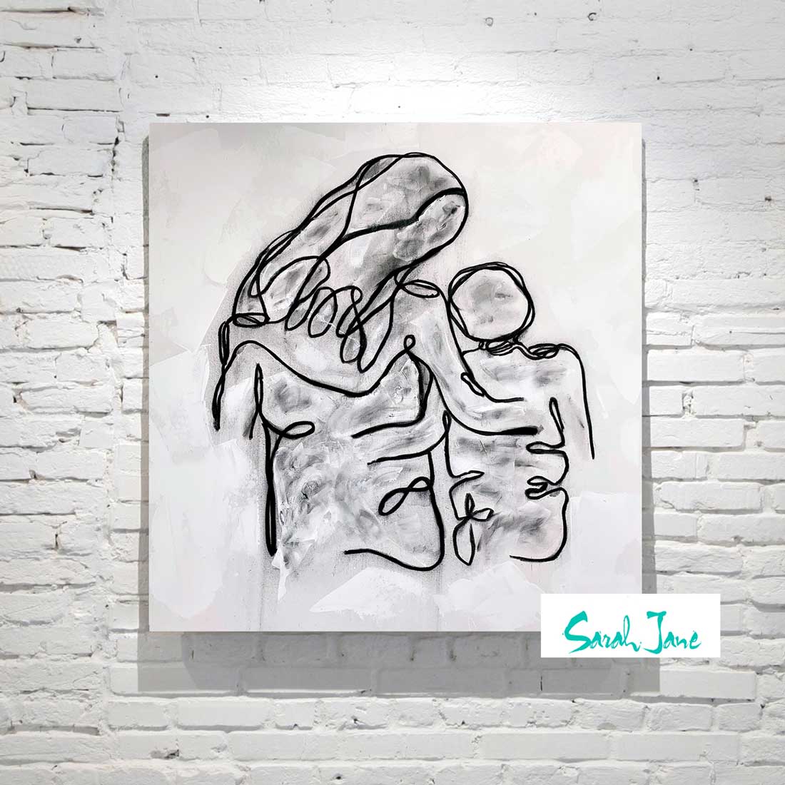 A lovely modern piece that is part of the collectors series Linear. No 12 is typical of the collection. Black charcoal lines grace an innocent white background of acrylic paint. As the lines move and connect with one another, a continuous bond of everlasting love is present.