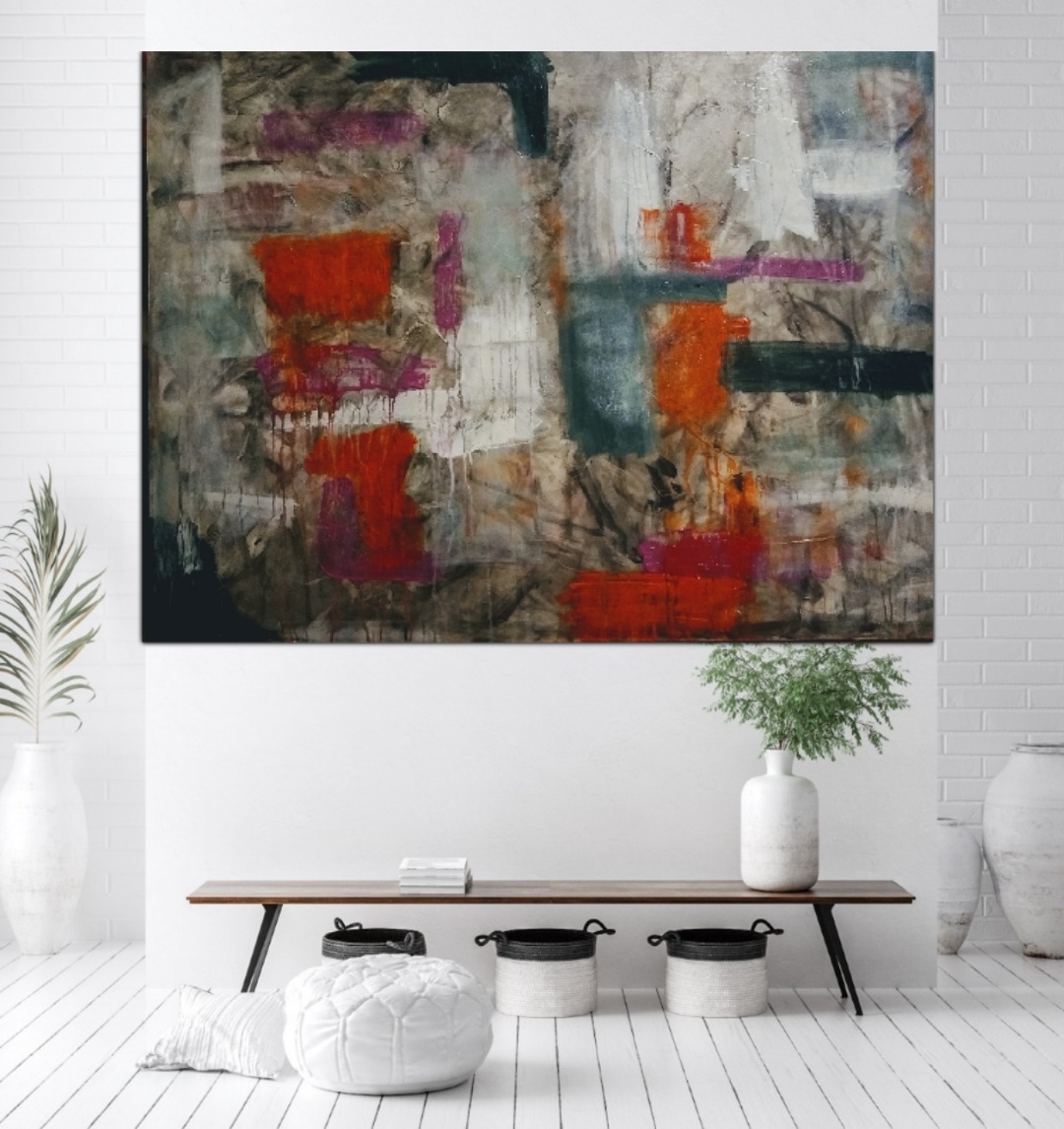 Link and Pin by Valeriya Master– abstract Floral mixed Media Artwork on stretched canvas, inspired by abstract visualisation of train stations and travelling.