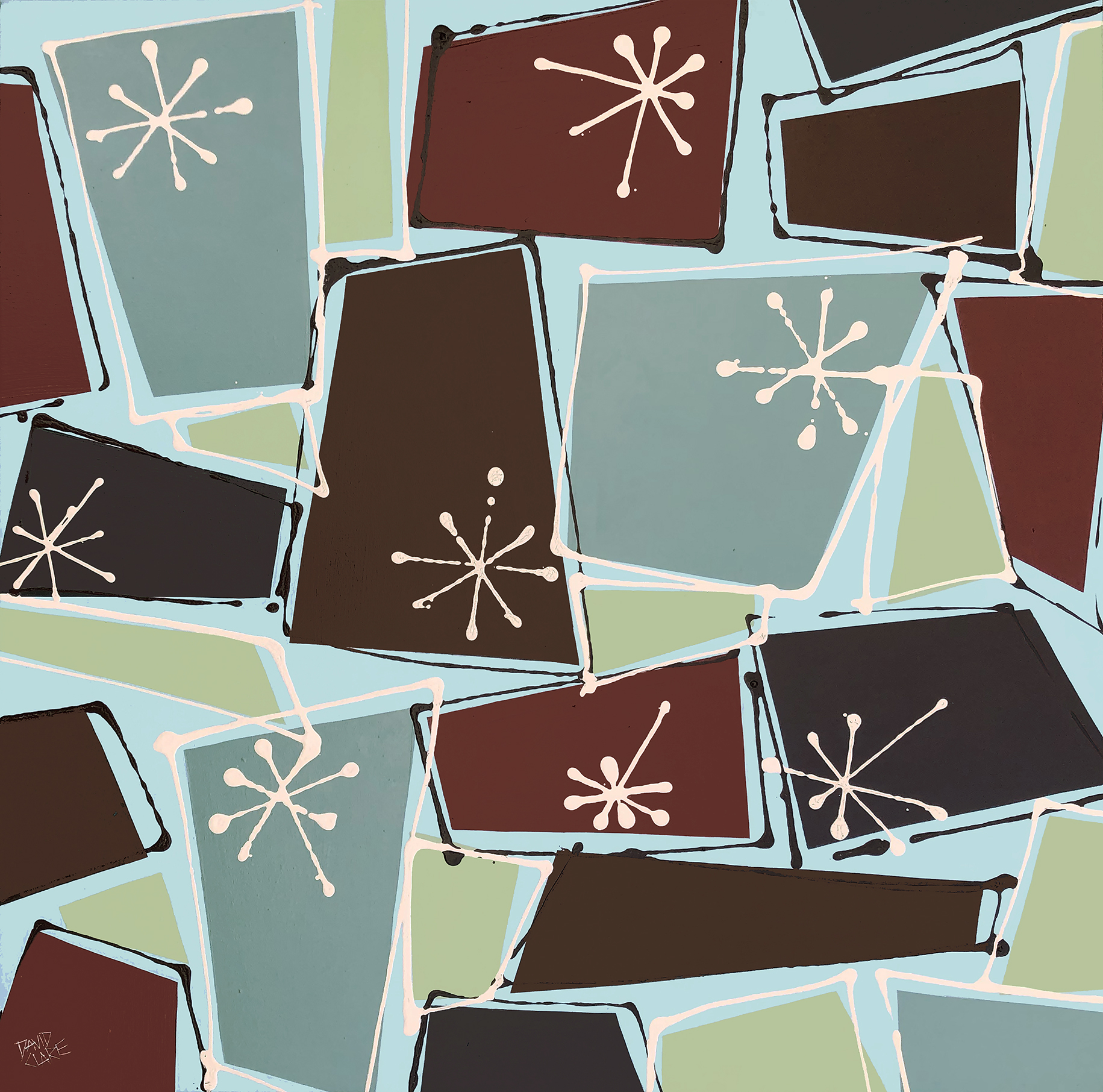 My latests inspiration/obsession…. Mid Century Modernism. This painting reminds me of the Lino on the floors (and walls) of my parents house when I was a kid. I love playing around with these off-beat shapes and colours that are inspired by 50’s and 60’s architecture and art. It would have been such an exciting time to be creating new ideas. The freedom to design whatever your mind can come up with has helped me break out from the norm, and avoid the mainstream. These might not suit the beige, cream, off-white styles that I see in most interiors, but they will definitely make an impact. Lots of fun, and most importantly….lots of colour!