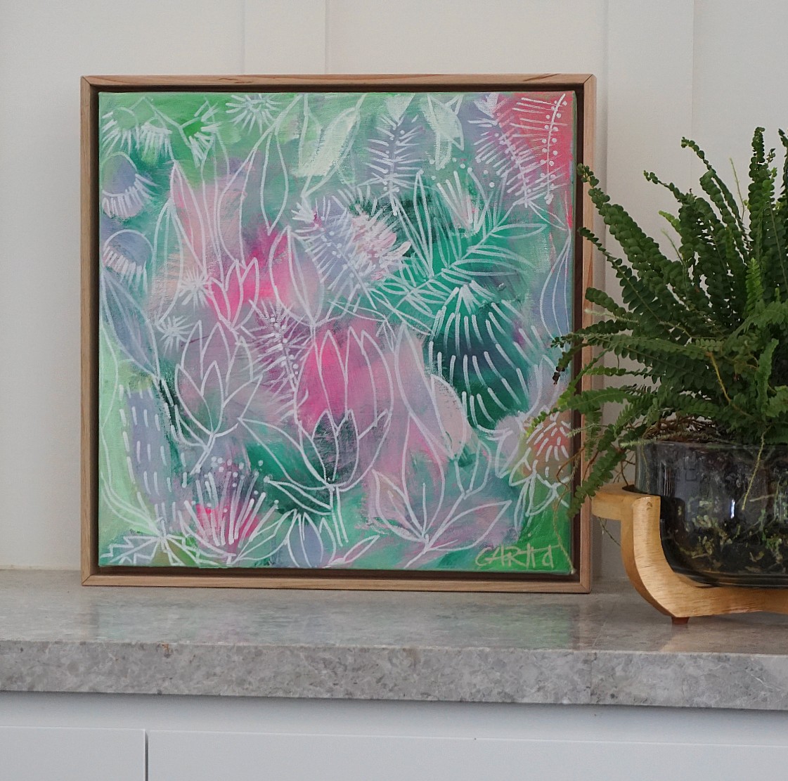 An original artwork, framed in Tasmanian oak, inspired by my ongoing obsession with native Australian botanicals.