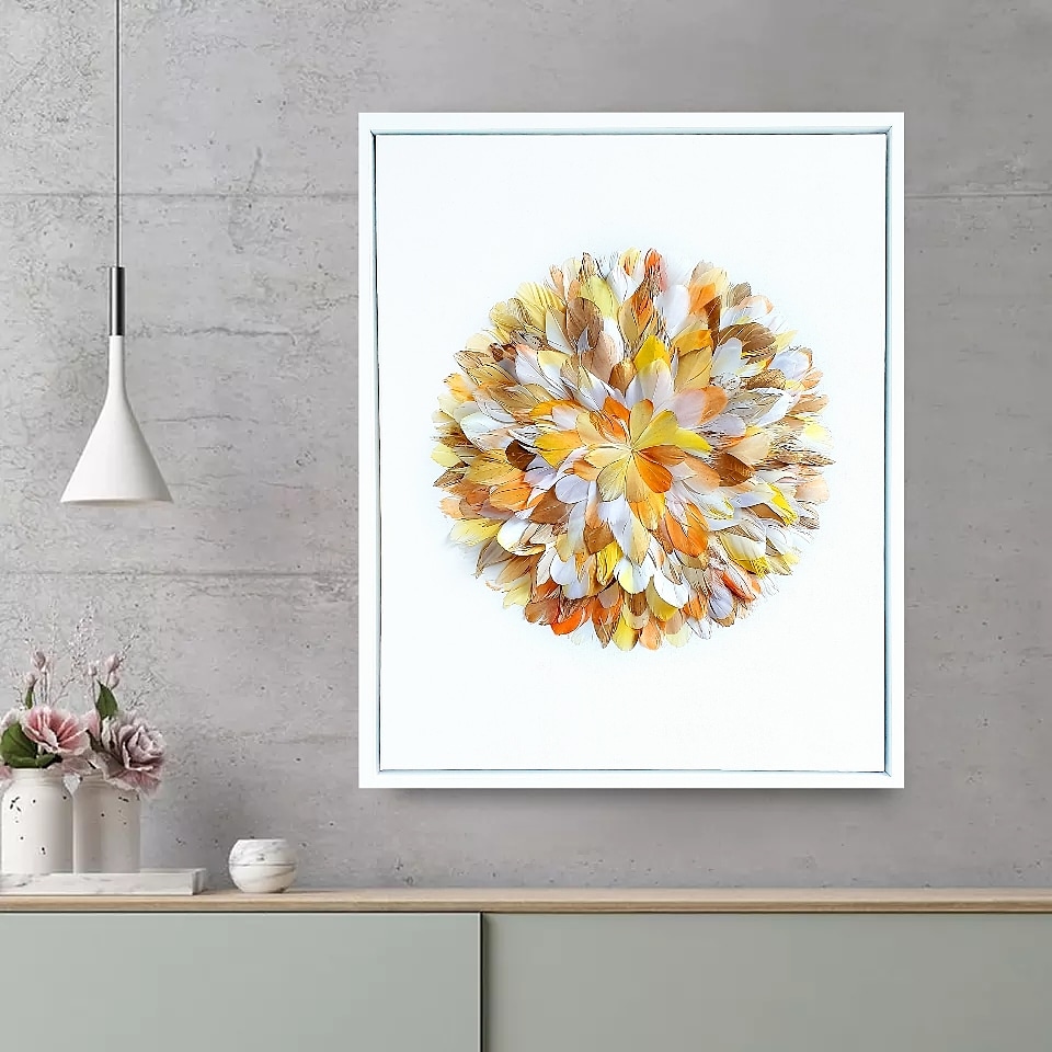 Flame – 3D feather collage on canvas