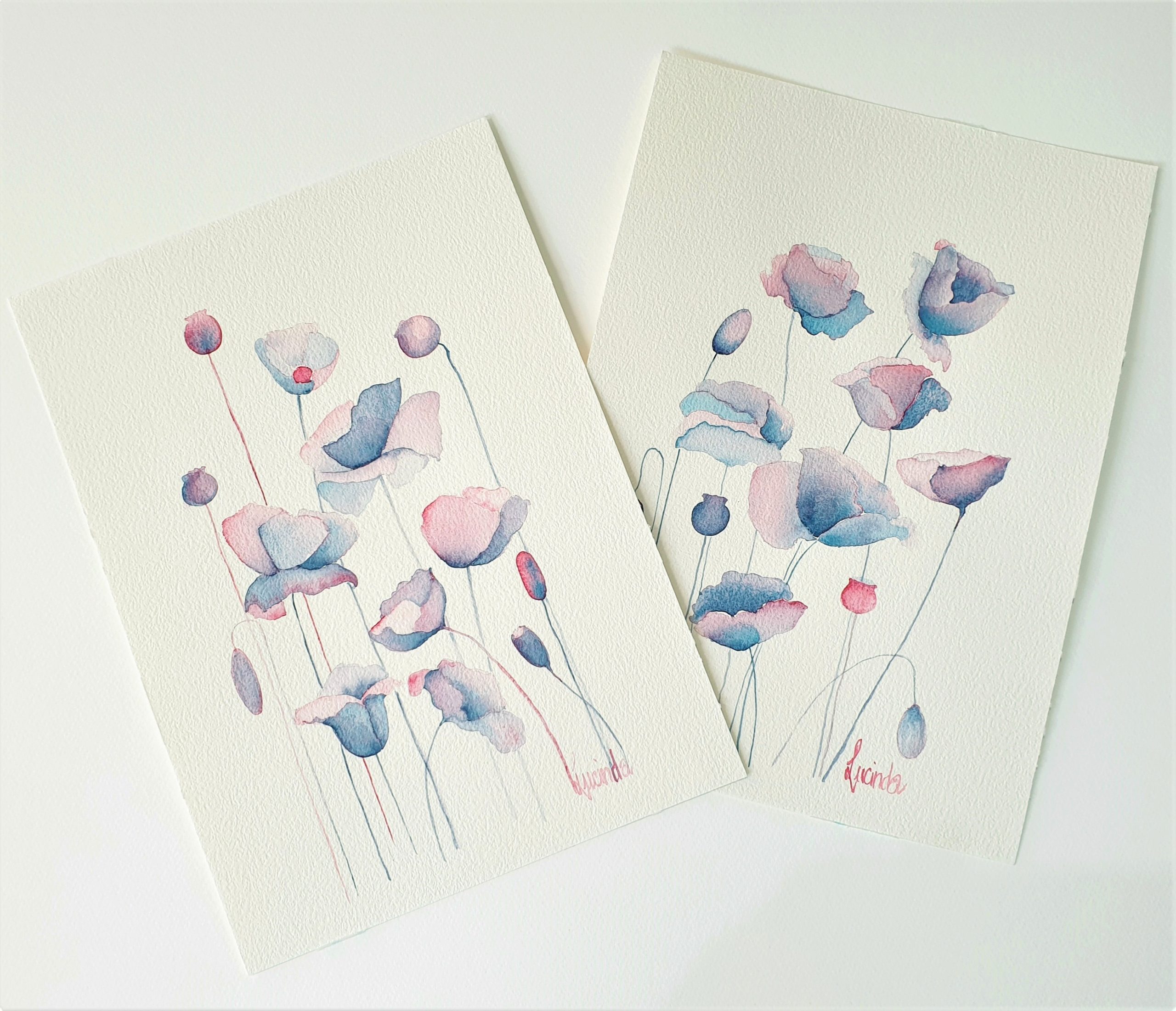 Love painting poppies they are always so interesting as they reach up to the sun. This pair would look great in a bedroom, perhaps matching frames and hung on either side of the bed.