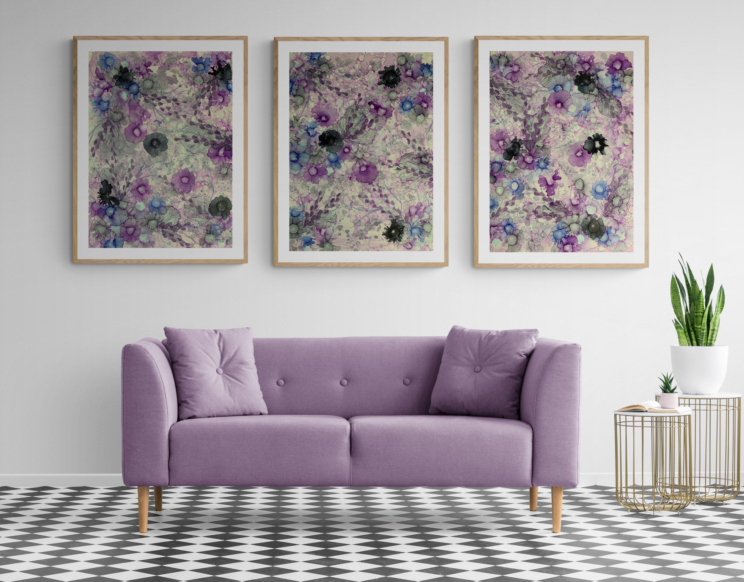 Original triptych 65 cm x 91 cm x 3 Alcohol ink on yupo paper sealed with high grade varnish and UV spray.