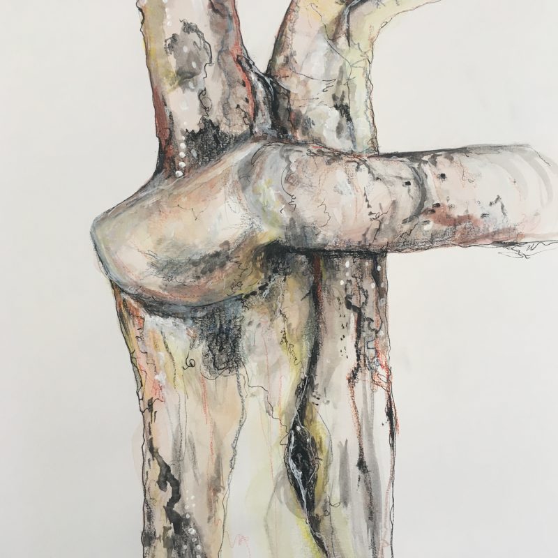 The collage surface was firstly built up with multiple layers of paper and then overlayed with subtle hits of Acrylic Paint, Sugar Spray Packs, Pencils, Stencils & graffiti Paint Pens.