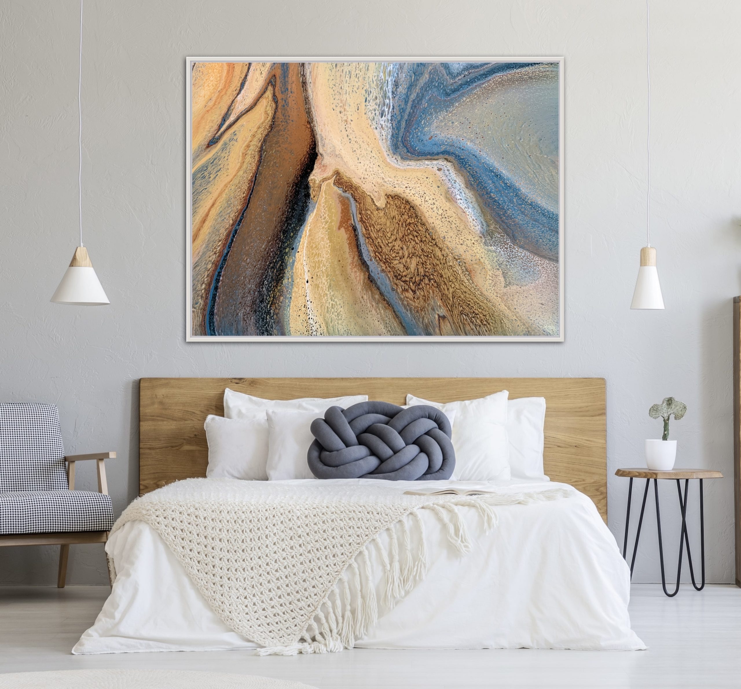 ‘In situ’ photos have been included to help with visualisation of the artwork in your home. In situ photos provided were created using the ArtStage app and may not be perfectly to scale. This being said, every effort has been made to represent the size of the art accurately but please read the dimensions of the artwork to ensure it fits your space perfectly. Where provided, photos of framed art are for illustrative purposes only.