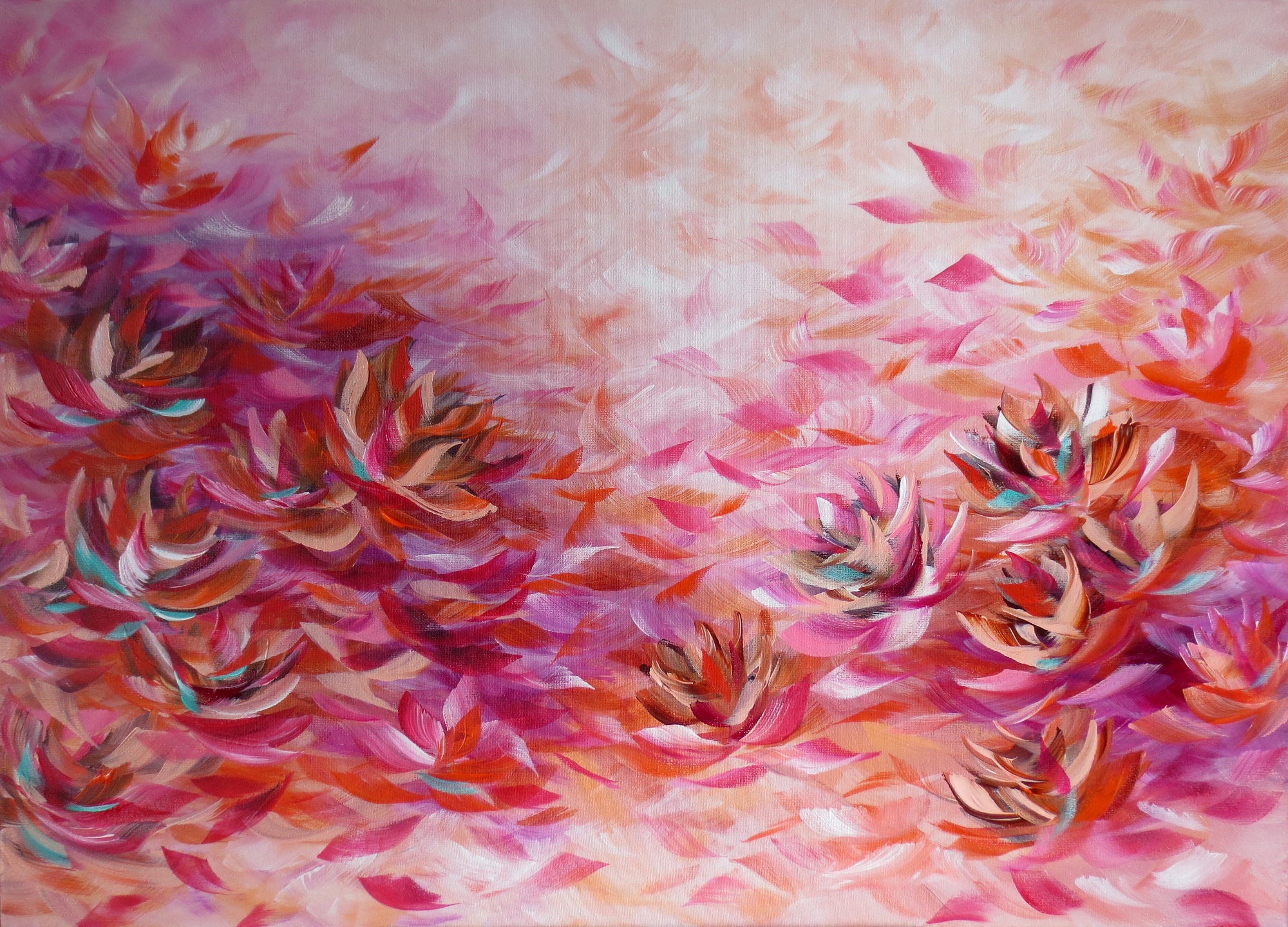Living for Love by Eva Pearl – Acrylic on gallery canvas stretched and ready to hang. Signed on the back. It has a strong wire at the back. Sides of the painting are painted as a continuation in the same colour to match the artwork so there is no need to frame. Signed with a Certificate of Authenticity.