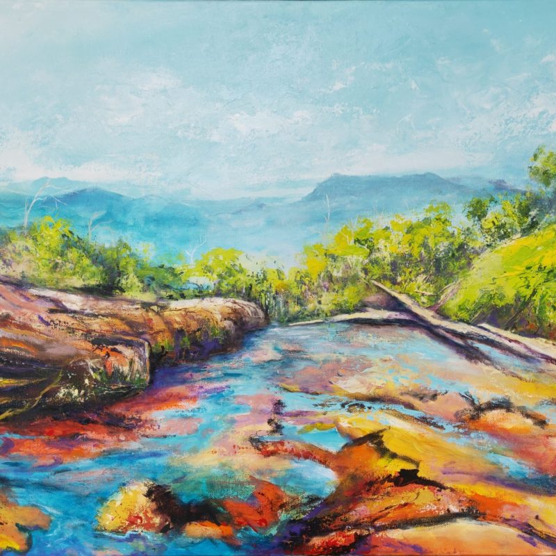 This artwork is available now and is ready to hang. It will leave my studio within 3 business days. The painting continues down the sides of the canvas so there is no need to frame. The greatest of care is taken with all my artwork and it will be carefully wrapped in bubble wrap and sturdy cardboard. Packaging and delivery within Australia are included in the artwork price.