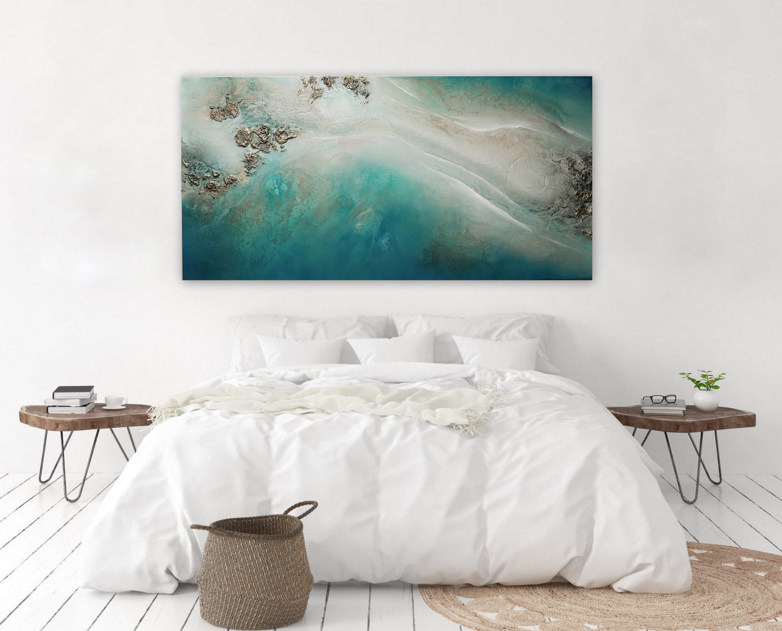 Beach Art Australia “Lost in Paradise” is a highly textured, 3 dimensional, aerial view of the Great Barrier Reef.