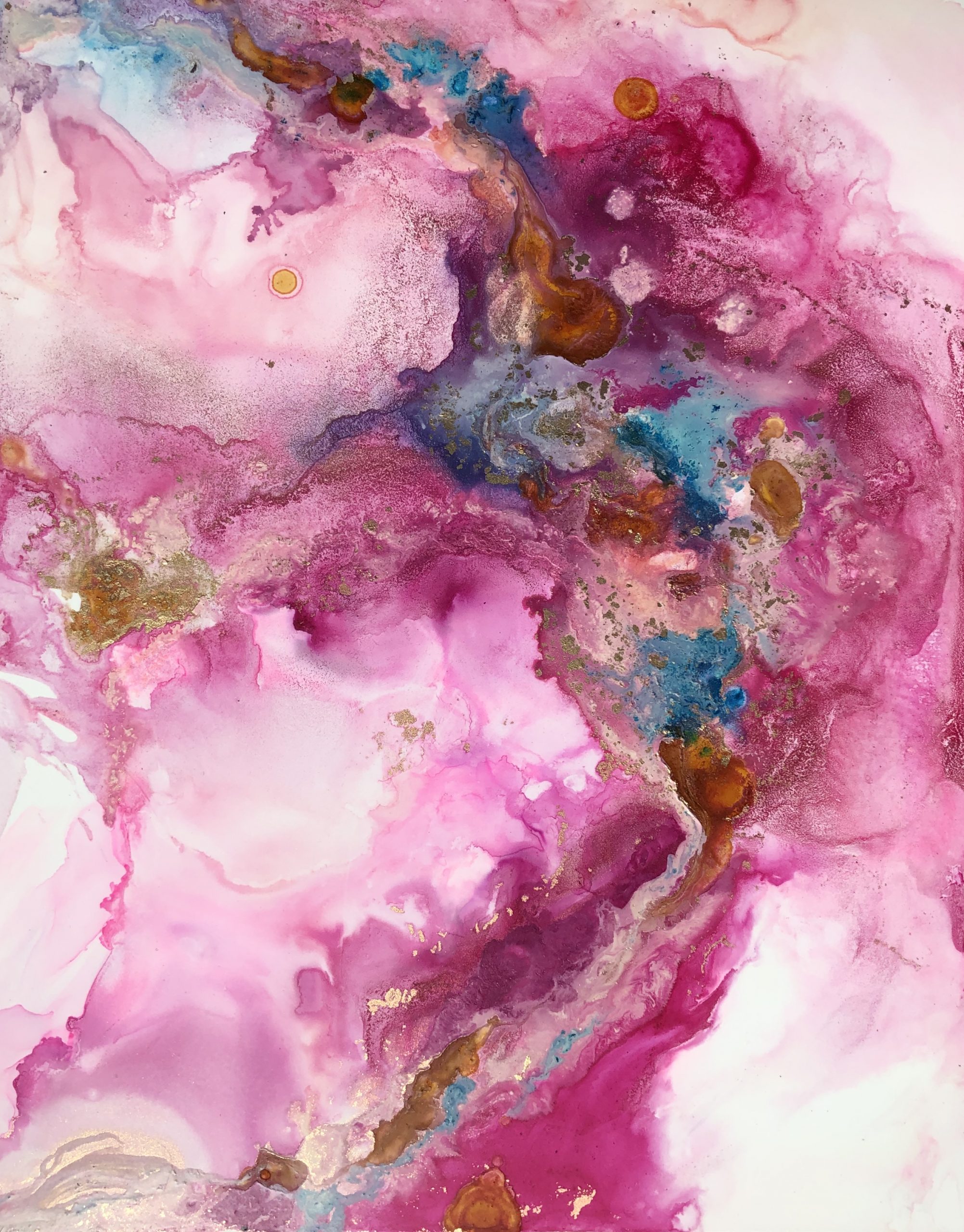 This original piece is painted on nara paper and is a combination of alcohol inks and mixed media, as well as shellac to add texture and interest.