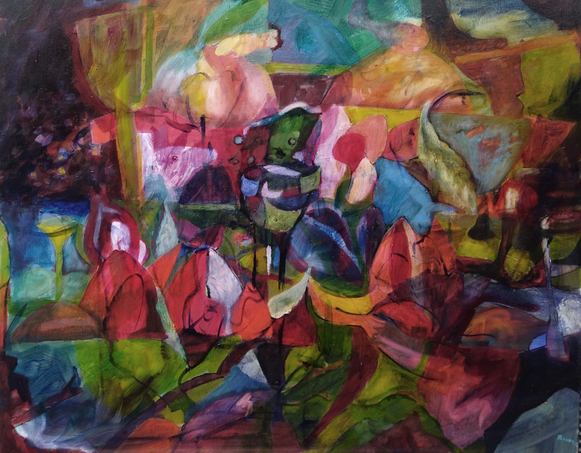 Oil painting on stretched canvas.