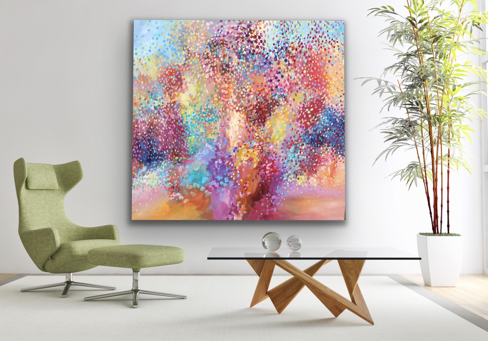 Love and Beauty by Theo Papathomas – A very soothing and tranquil painting where sky, clouds, water and petals come together to create this beautiful landscape. Capturing the beautiful colours of the petals falling from the sky onto the landscape . A very harmonious and tranquil composition that can be enjoyed many years to come. The painting is signed and dated 2020 at the back and comes with a certificate of Authenticity.