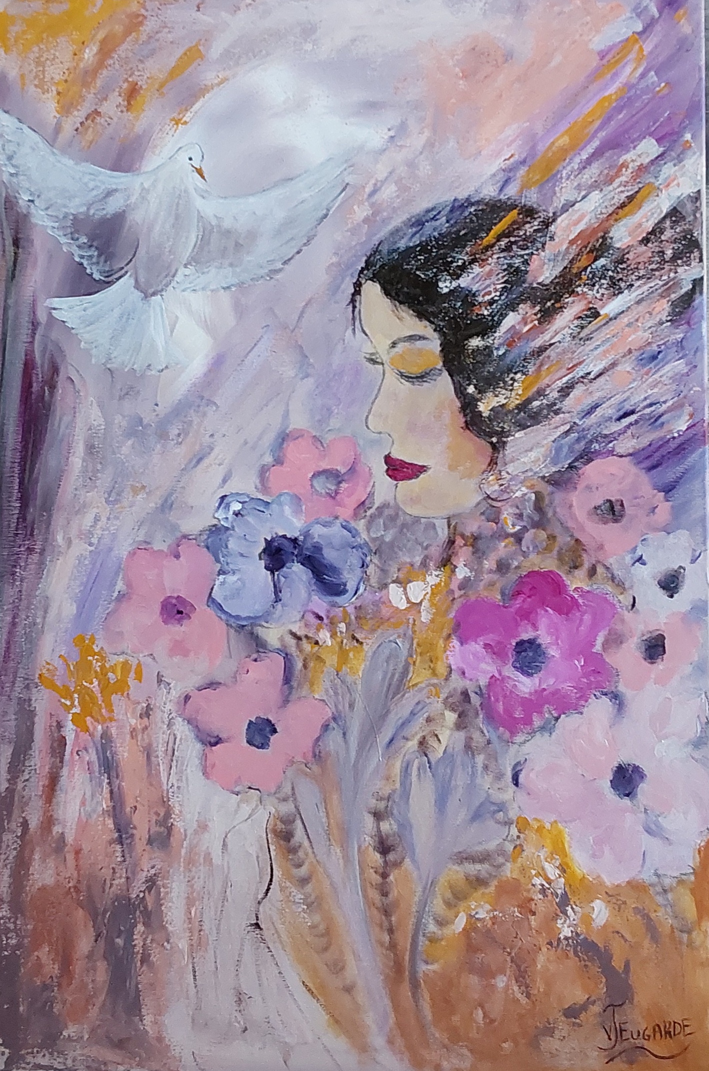 Love and Peace by Valerie Eugarde is a figurative abstract expressing the desire for peace to be found in the world we live in,the dove is symbolic, all we need is love.