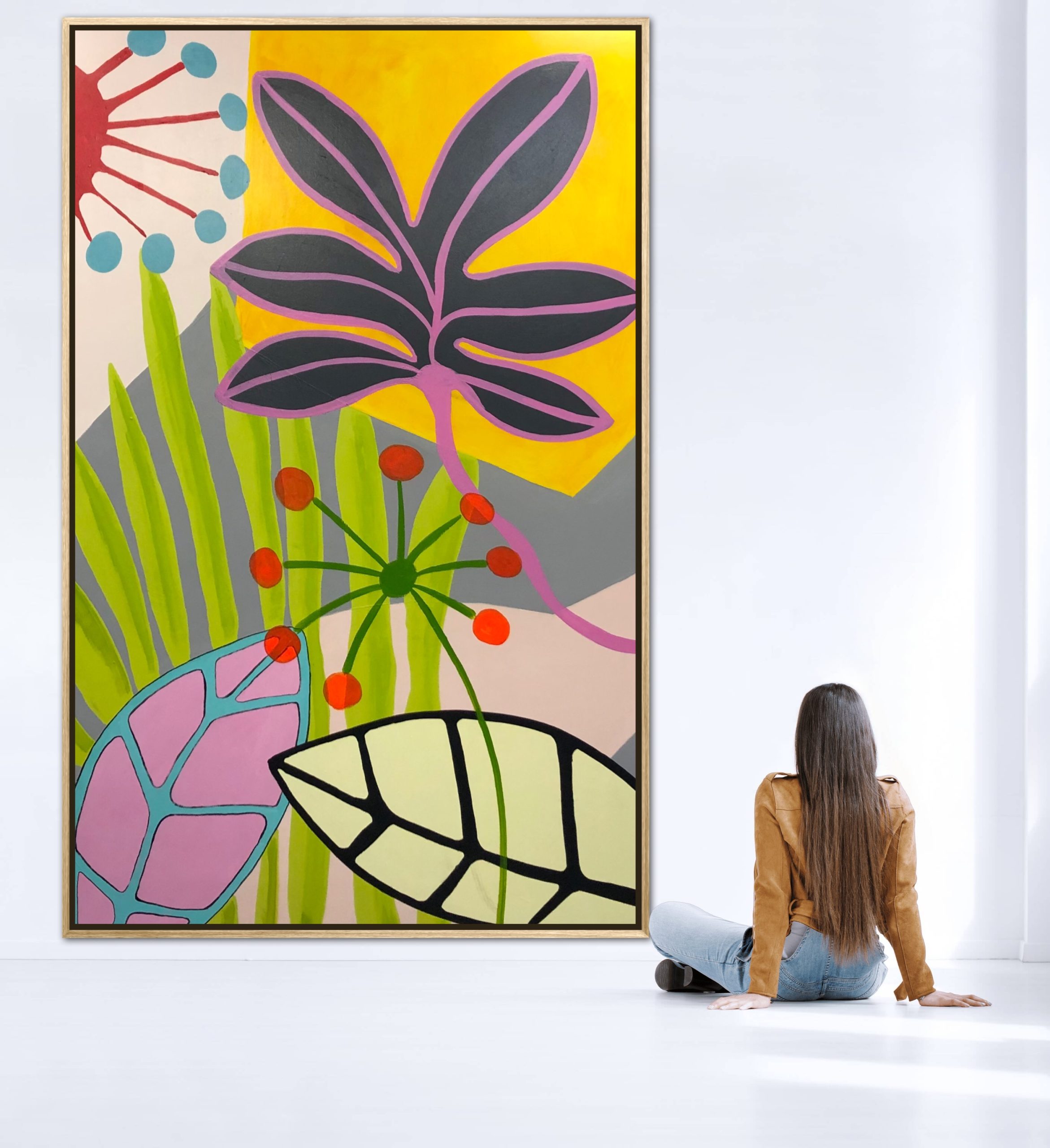 Love in the Garden by Colin Crawford – this is a great large piece, vibrant and colourful. I was inspired to paint this piece by the beauty of the natural colours of flowers . it never stops to amaze me the abundance of colour with flowers.