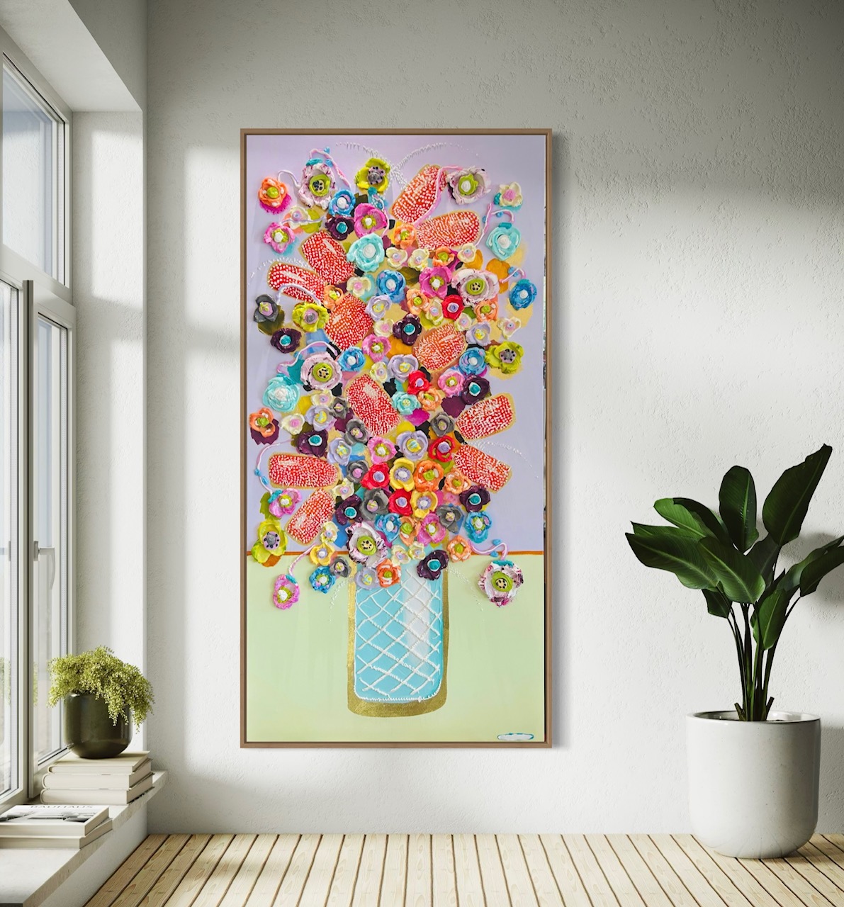Love Kisses and Hugs by Collie Crawford – A celebration of joy and affection, this 144cm x 70cm still life painting