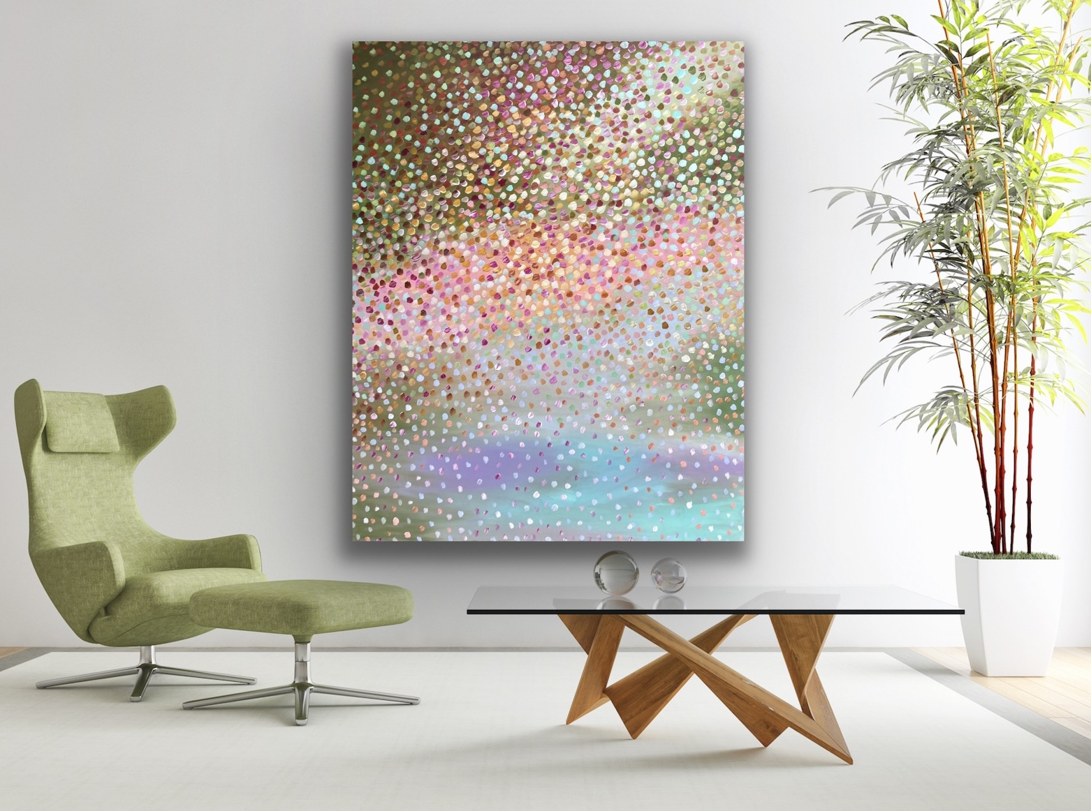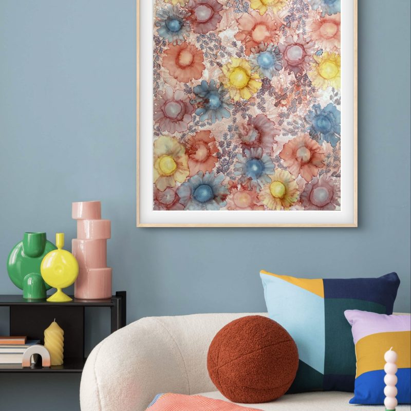 Love you Always by Theo Papathomas a composition of colours and rhythms of petals dancing over the pond. An explosion of petals swept by the winds creating this beautiful dance over the landscape. Capturing the beautiful colours of petals, olive greens and pinks, browns .A painting with lots of layers of paint and creating so much depth. A place of meditation and relaxation makes a very peaceful and tranquil painting A beautiful bouquet of Petals over the pond. This painting is painted with Acrylic paint and does not come with an external frame. The painting is signed and dated 2021 at the back and comes with a certificate of authenticity.