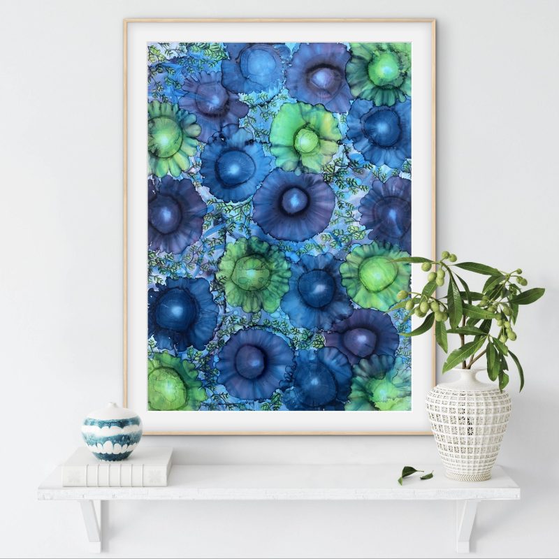 The medium used is alcohol dye ink on heavyweight Yupo synthetic paper. The original artwork is unframed and 115 x76cm in size, you can hang this horizontal or vertically. Sealed with UV protective varnish ready for framing. Signed on front.